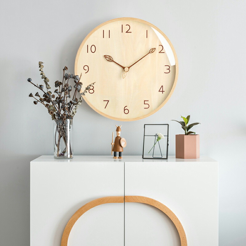 木の独特の風合いとシンプルなかたちは、お部屋に自然となじみ、静かに時を刻みます。天然の木で文字盤を作って、ナチュラルモダンな印象を与えてくれます。存在感があるお洒落なウォールクロックでお部屋を上質な空間を演出してます。