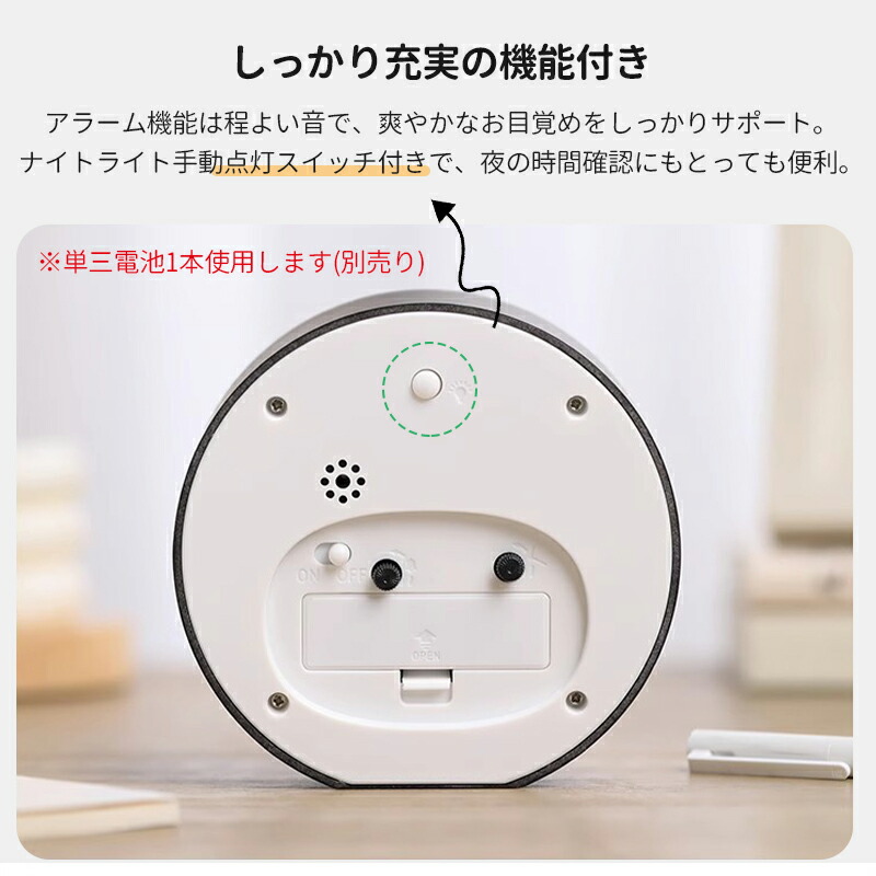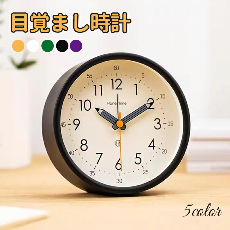 目覚まし時計 置き時計 おしゃれ かわ ホワイト グリーン パープル ブラック イエロー