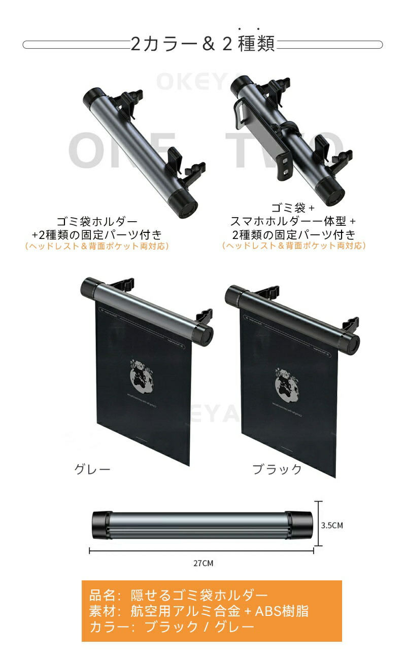 ゴミポケット収納 ローラー式 車載 隠 ブラック グレー ブラック(スマホホルダー付き) グレー(スマホホルダー付き) ビニール単品(ブラック40枚) ビニール単品(ホワイト40枚) ビニール単品(ブラック20枚) ビニール単品(ホワイト20枚)