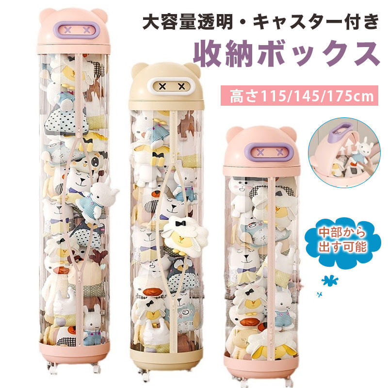 ぬいぐるみ 収納 ジッパータイプ 透明 クリーム ピンク 115cm 145cm 175cm