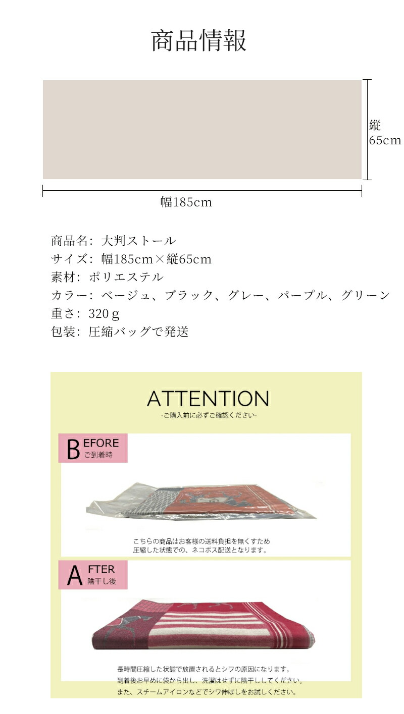 ストール 大判ストール スカーフ ショ バッグ 小物 ブランド雑貨 通販 グレー パープル グリーン ブラック ベージュ