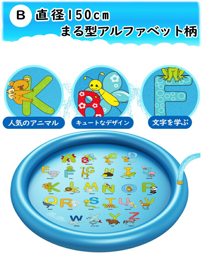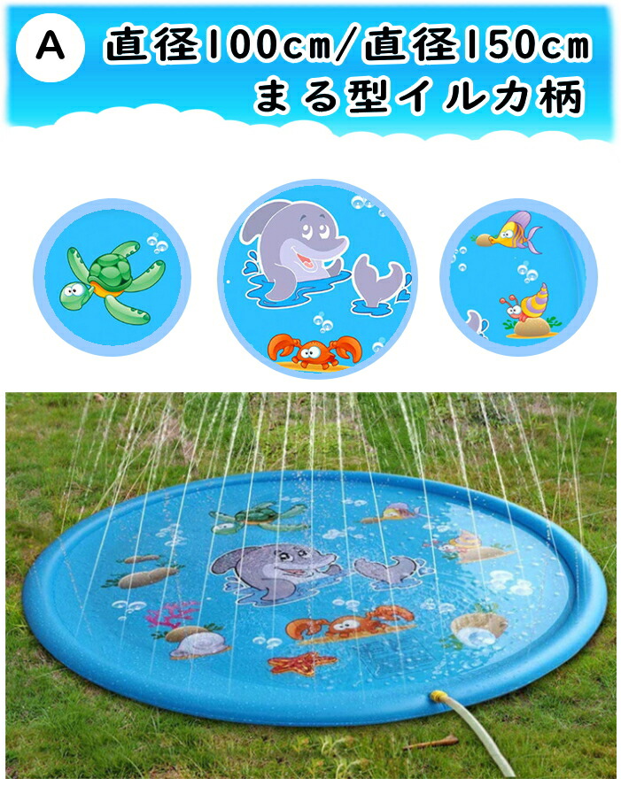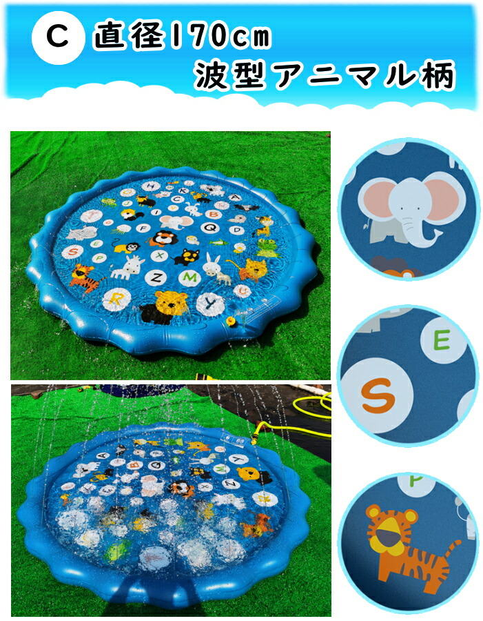 噴水マット 噴水プール 大きい 170 おもちゃ プール 水遊び プール 早い者勝ち!ポイントUP A100cmまる型イルカ柄 A150cmまる型イルカ柄 B150cmまる型アニマル柄 C170cm波型アニマル柄