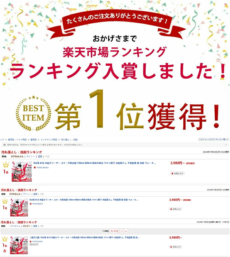 KLCB A12 水垢クリーナー スケ 150ml 600ml