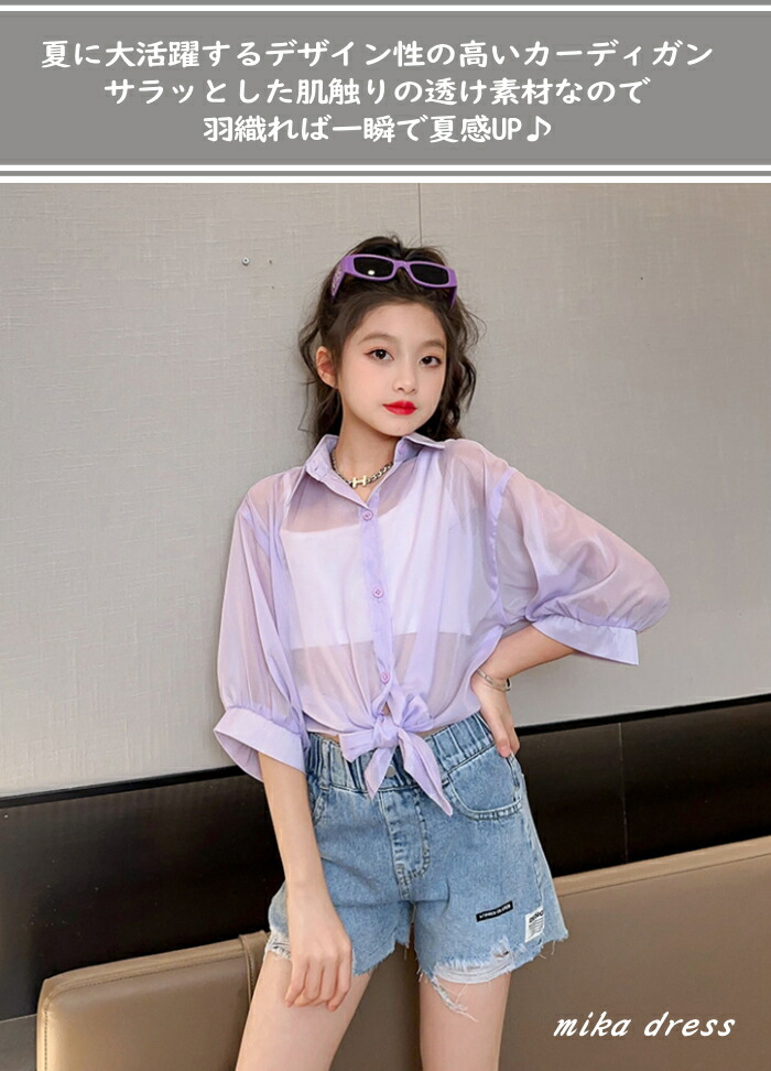 前結び シャツ キッズ 子ども 女の子 キッズ トップス カーディガン ボレロ 通販 ブラック ホワイト パープル