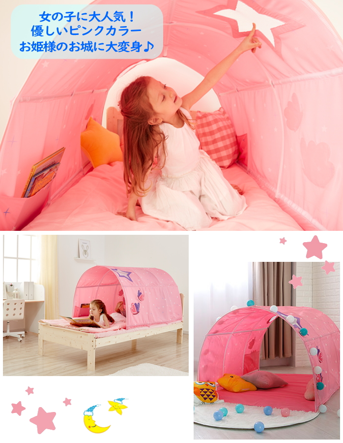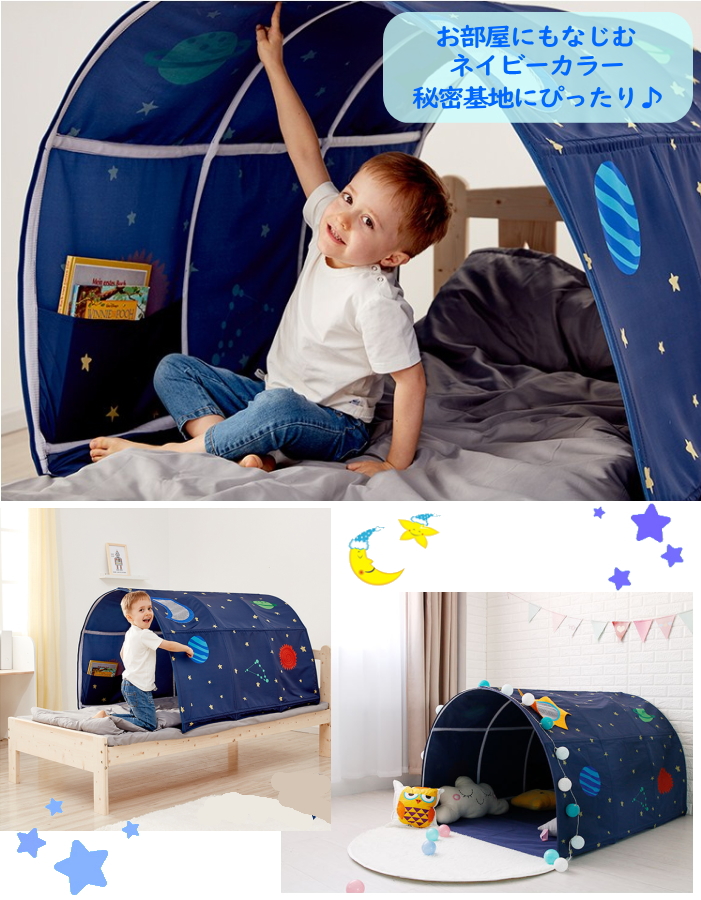 キッズテント ベッドテント おしゃれ 女の子 男の子 ベッド トンネル 北欧 落下防止 シングル 遮光 プリンセス キャノピー 子供 テント 子ども スリーピングカーテン プラ テントハウス