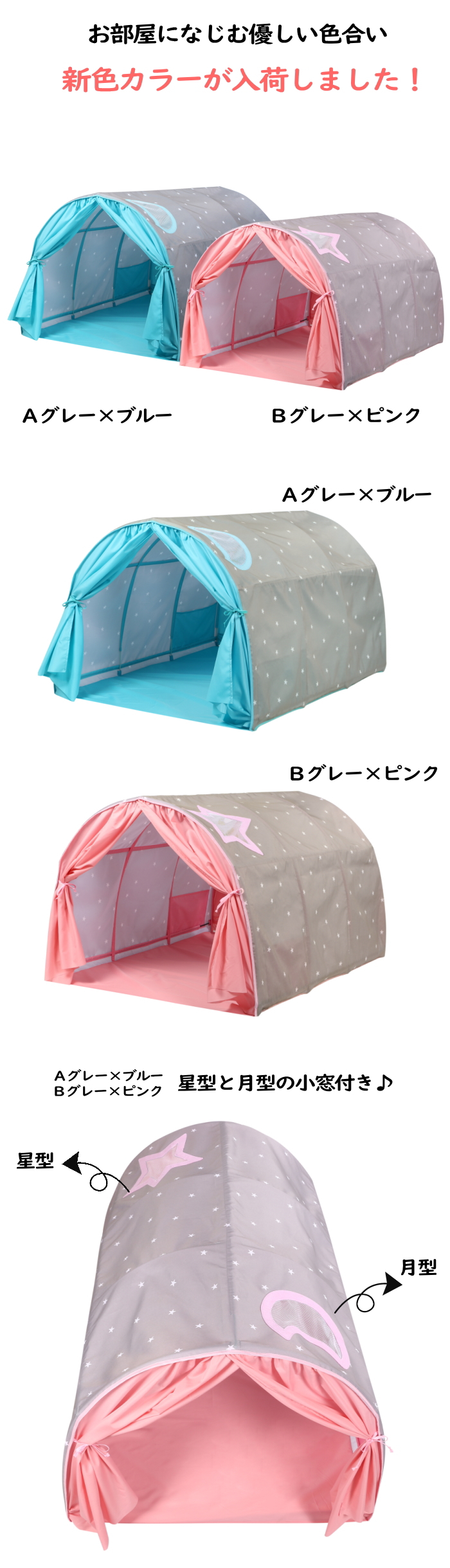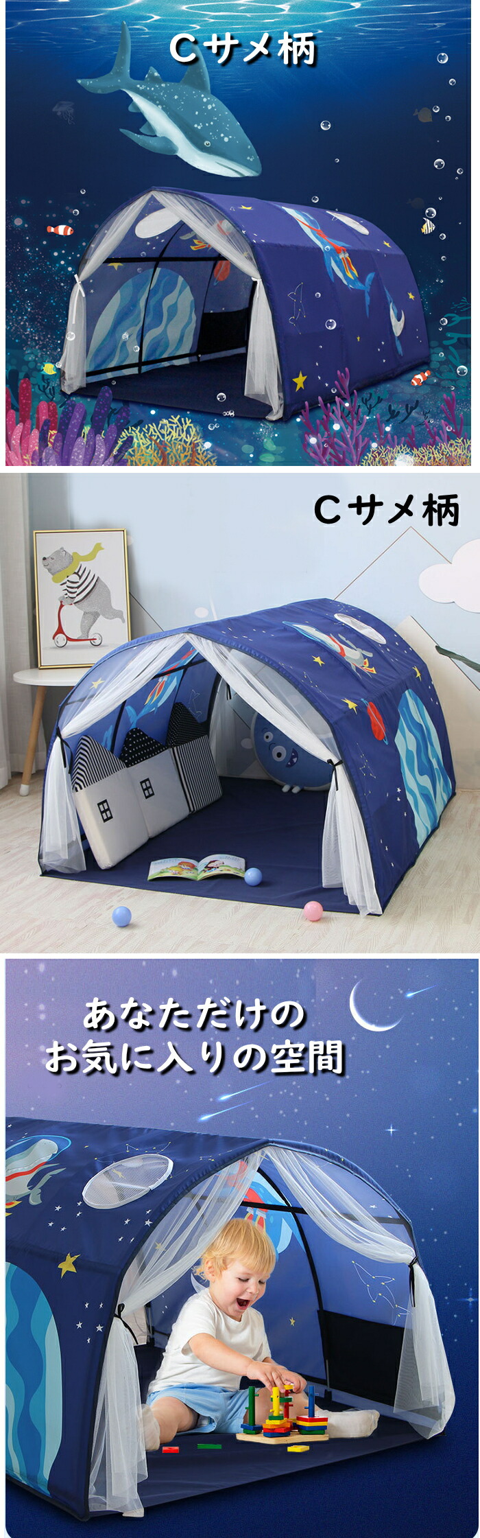 キッズテント ベッドテント おしゃれ おもちゃ ゲーム 人気 ネイビー ピンク Aグレー×ピンク Bグレー×ブルー Cサメ柄 Dくま柄 Eうさぎ柄