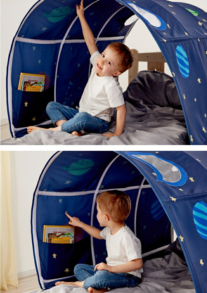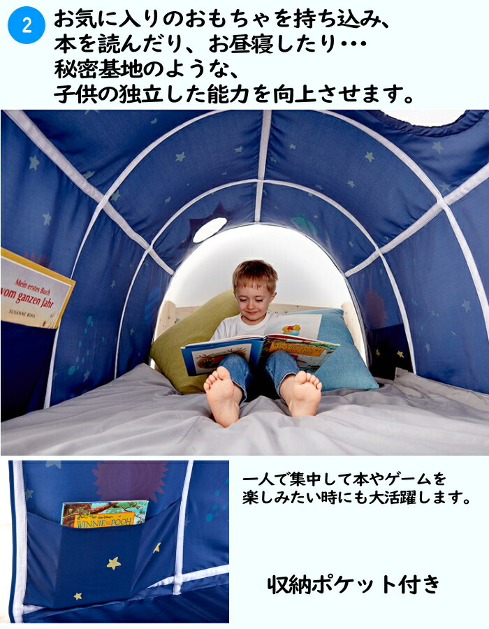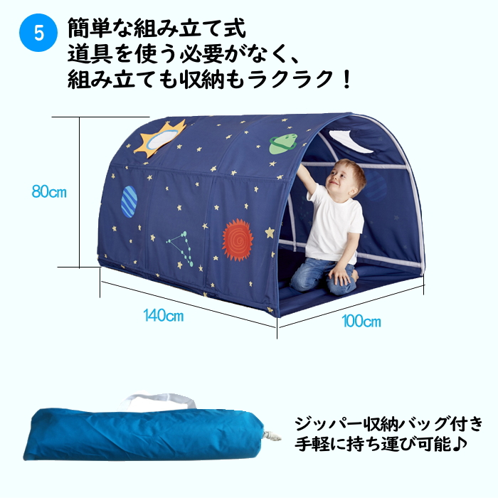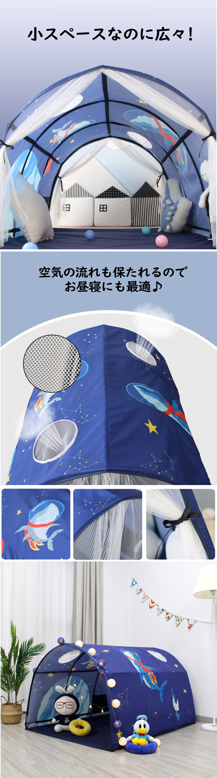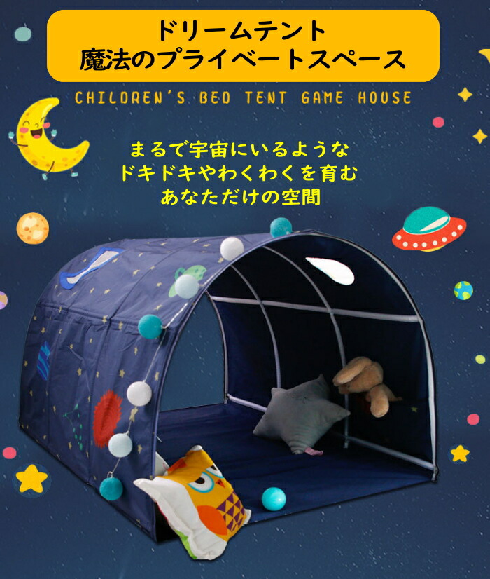 ドリームテントは星空のトンネルデザインを採用し、まるで宇宙にいるような、ドキドキやわくわくを育むあなただけの空間ができあがります。