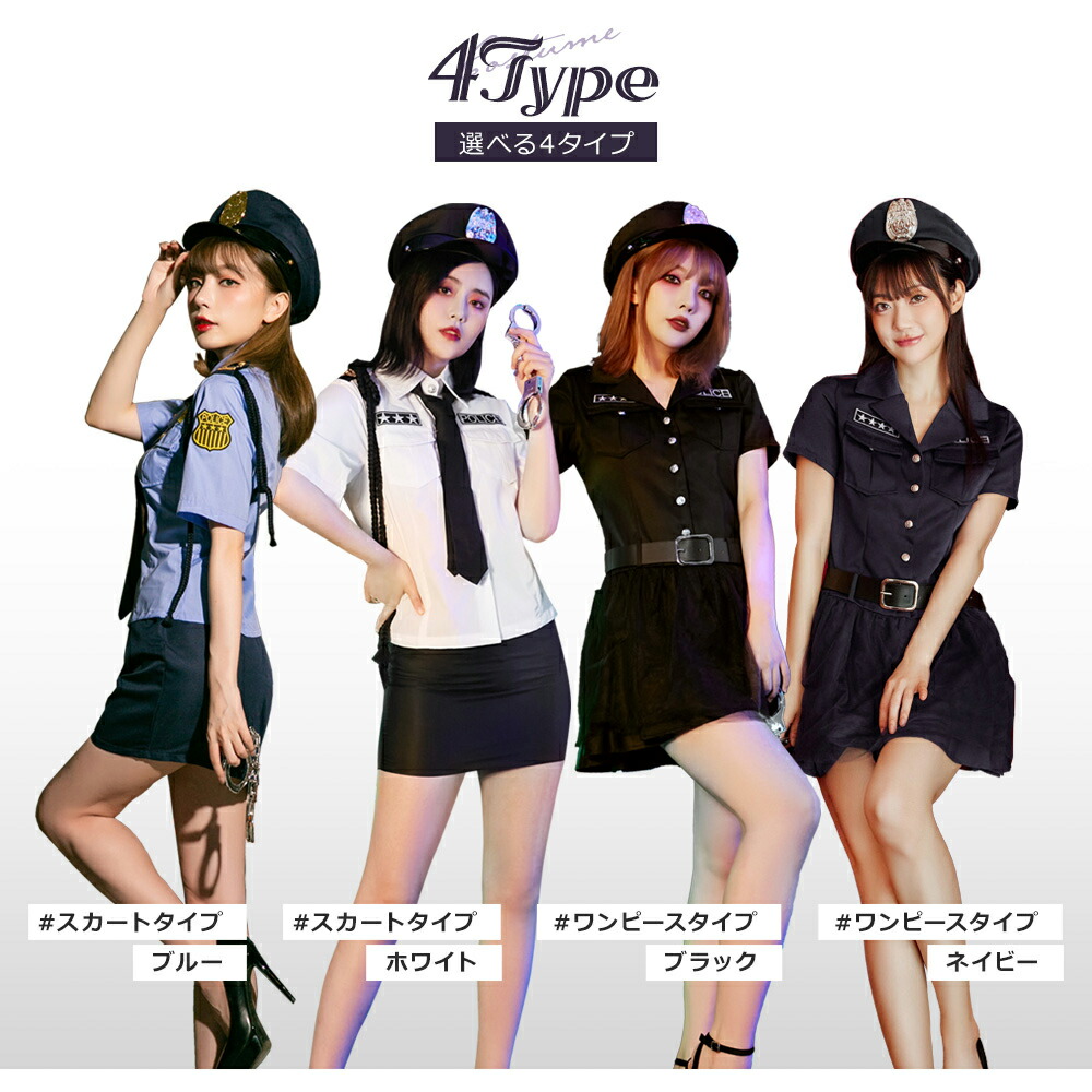 選べる4色 ハロウィン コスプレ ポリ コスプレ 変装 仮装 コスチューム一式 期間限定割引クーポン Mサイズ Lサイズ XLサイズ スカートタイプブルー スカートタイプホワイト ワンピースタイプブラック ワンピースタイプネイビー