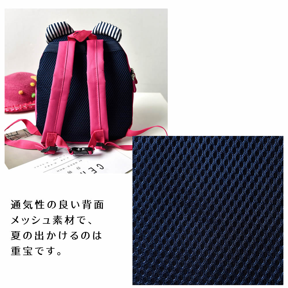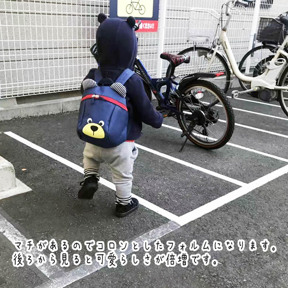 2~5歳適用キッズ仕様リュックです。丸みを帯びたかわいいくまちゃん、ピョンと飛び出た耳がポイントのとっても可愛らしいリュックです。