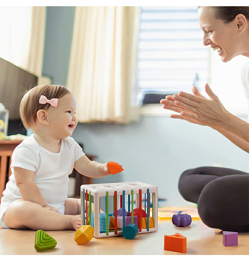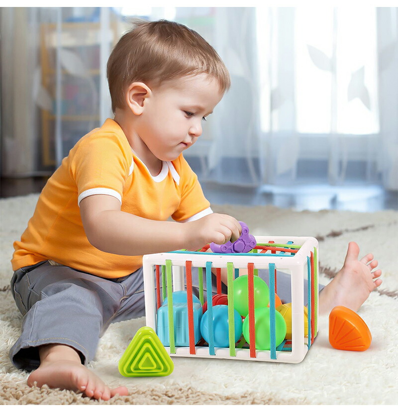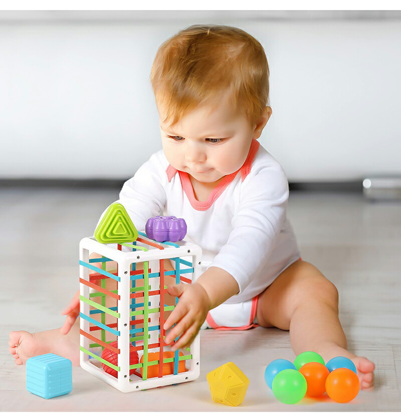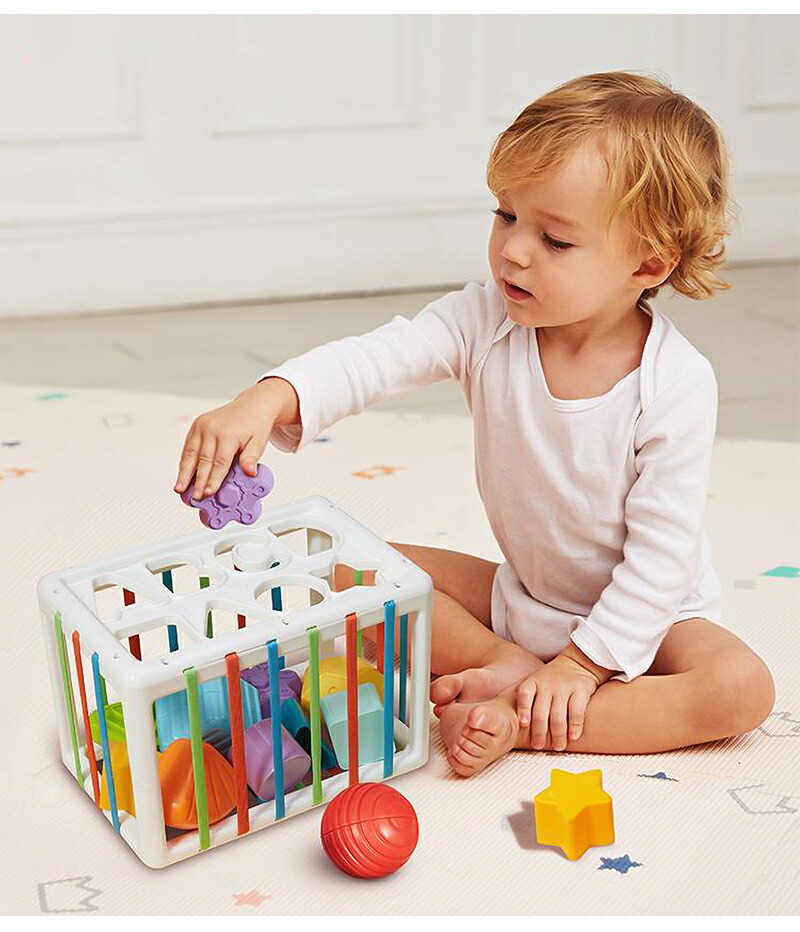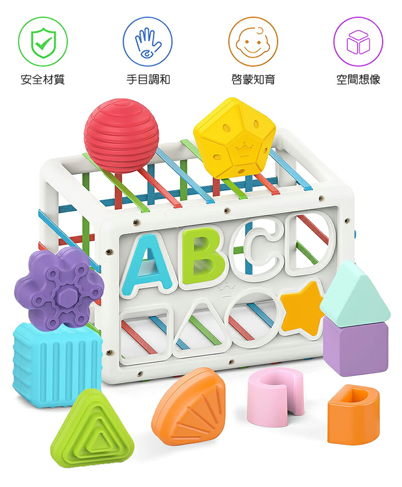 【豪華のセット】この赤ちゃんの形のソーターおもちゃは、色付きのゴムバンドが付いた感覚ボックス、8つ形状のブロックと、握りやすい6つの質感のある感覚ブロックで構成されています。 赤ちゃんは、他のABCDの形を正確に合わせる方法、おもちゃを取り出して交換する方法を学びます。これにより、問題解決能力や形と色の認識能力だけでなく、細かい運動能力と器用さも発達します。。