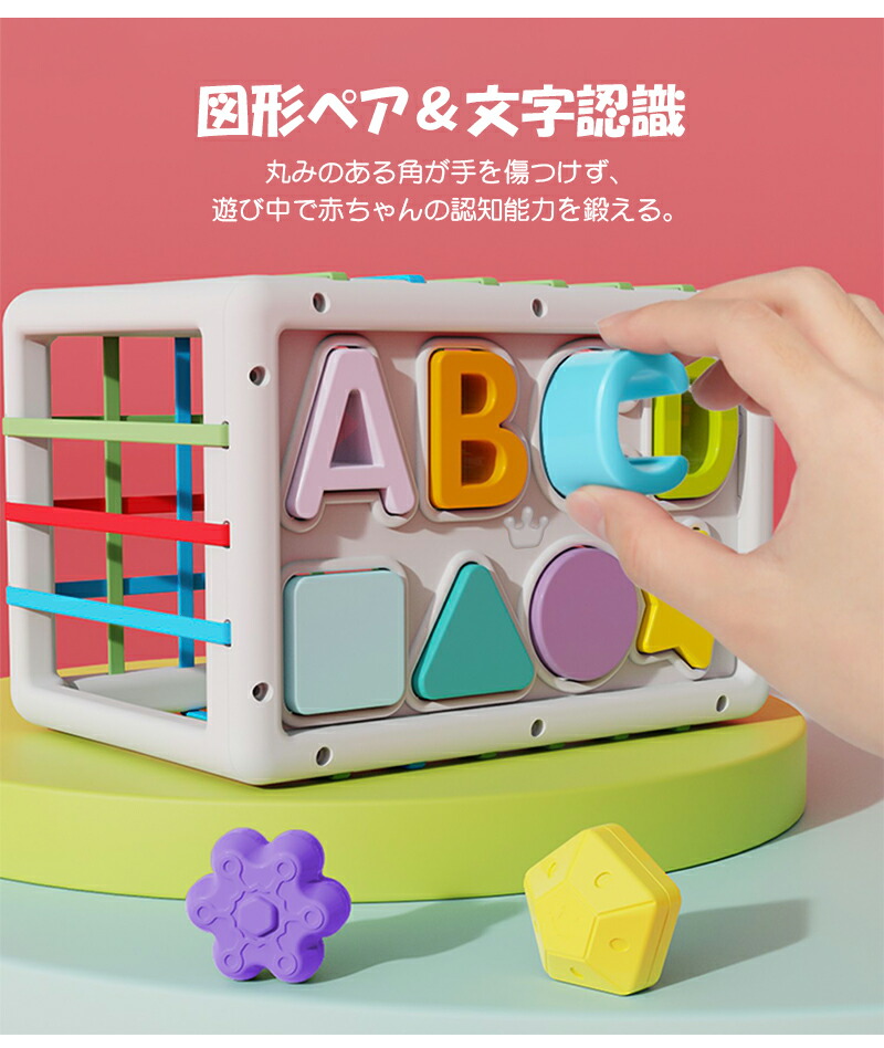 【早期知育玩具】 この形合わせおもちゃは、赤ちゃんに触覚体験を提供するように設計されています。好奇心は、子供様が探検し、試してみて、より多くの楽しみを発見するように促します。赤ちゃんはゴムバンドを押して、これらの積み木を直方体に入れようとし、ルービックを取り出します。抜いたりして楽しむことで、巧緻性を養ってくれます。また、ブロックとブロックがぶつかり合って音を鳴らしてくれるので、耳で楽しむこともできます。自由な発想で遊びの幅は広がり、認識力や色の違いの理解力が育ち、お子さまの想像力を養います。