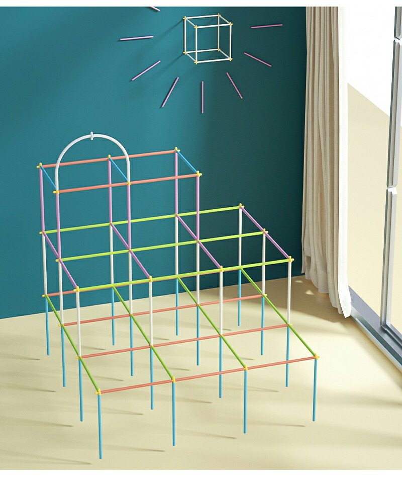 【無限の組み合わせ、無限の遊び方】 一般的なブロックと違い、固定モデル作品を作るのではなく、 好きなものを自由に作ることができます。お子様の多様性を伸ばすために創られたおもちゃです。カラフルなチューブ、コネクターを直感的につなぎ合わせ、様々な個性あふれる作品が簡単に出来上がる、 シンプルだけど新しいブロック知育玩具です。小さなチューブを使って手先を使う作品も作れますが、 背丈を超えるようなダイナミックな作品(城、車などの大きな建物)も作ることができます。