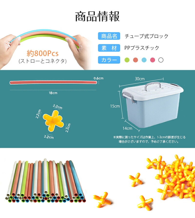 【製品情報】:製品には、800のチューブとジョイント、収納ケース付け。さまざまな色のストローとジョイントが含まれており、子供たちの色に対する感受性を向上させ、手と目の協調を促進できます。製品サイズ:直径0.6*18cm。箱つき:30*15*14cm