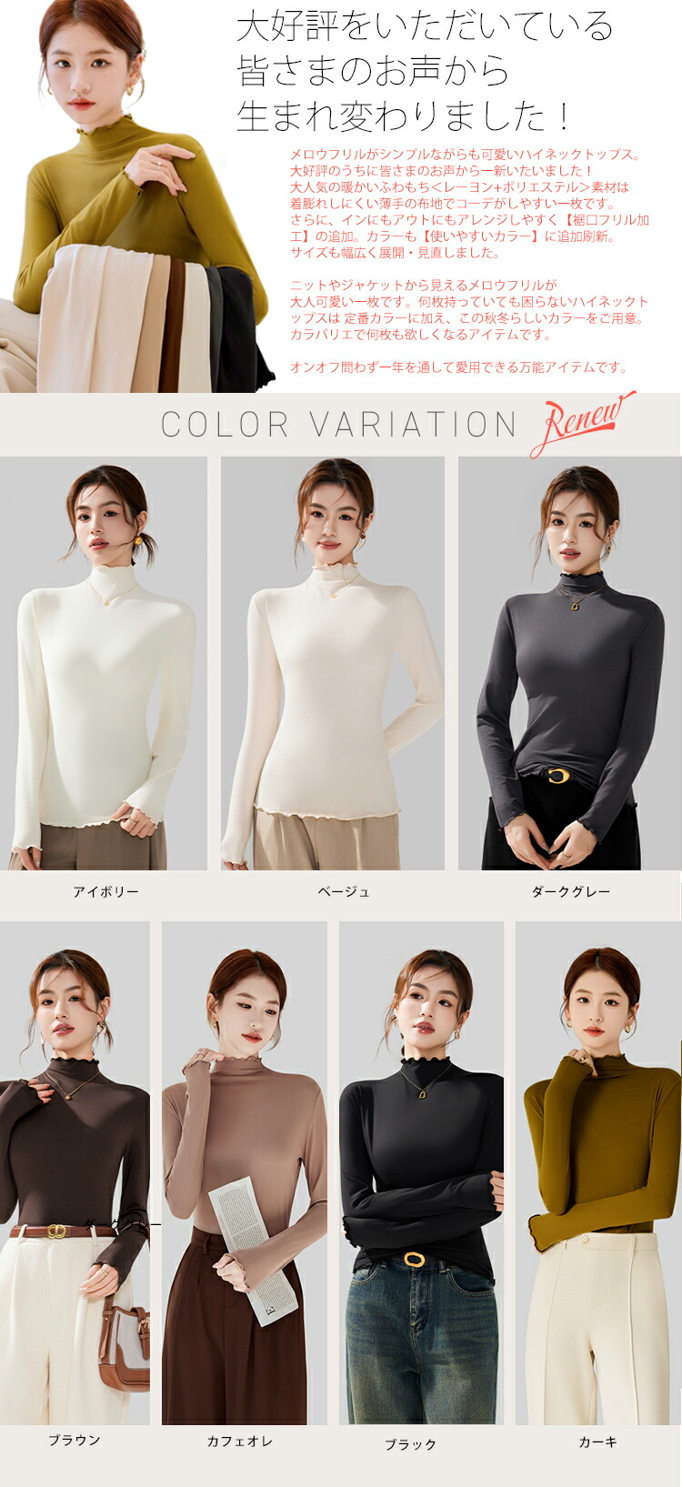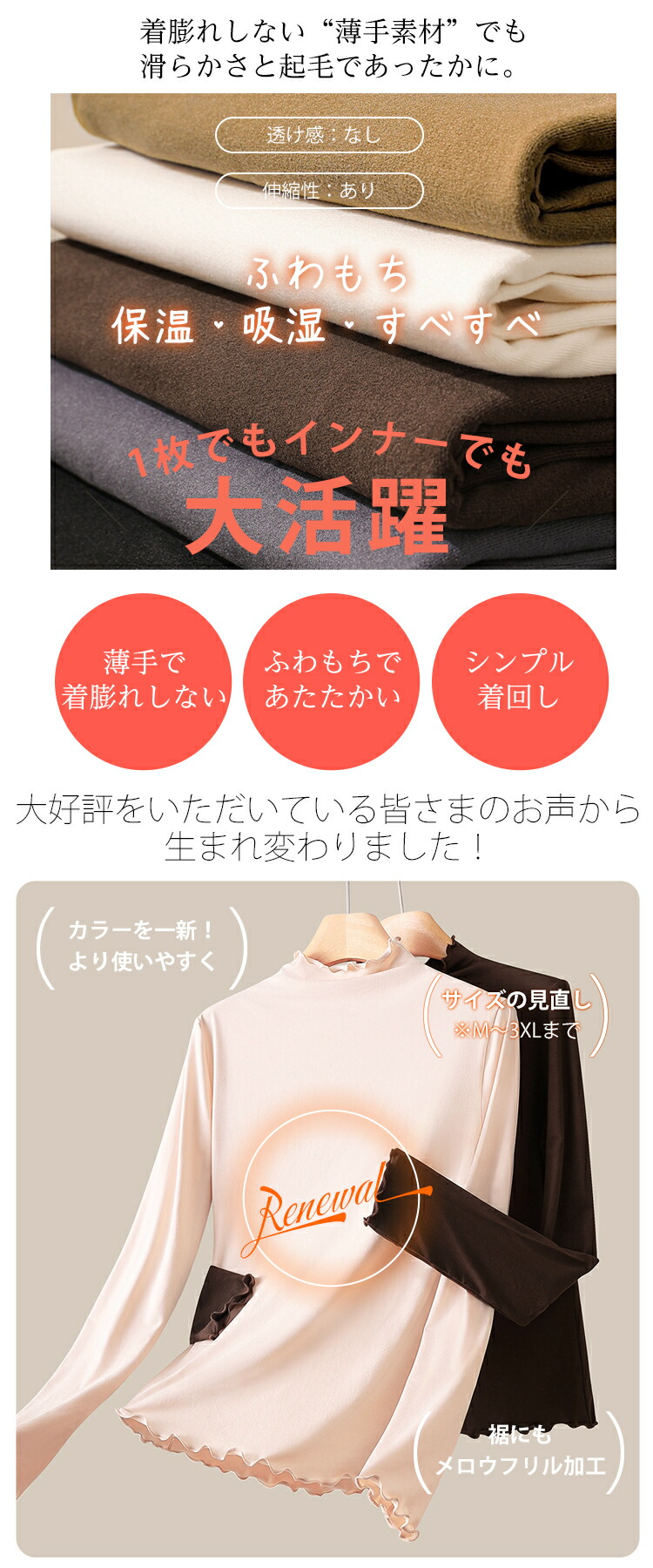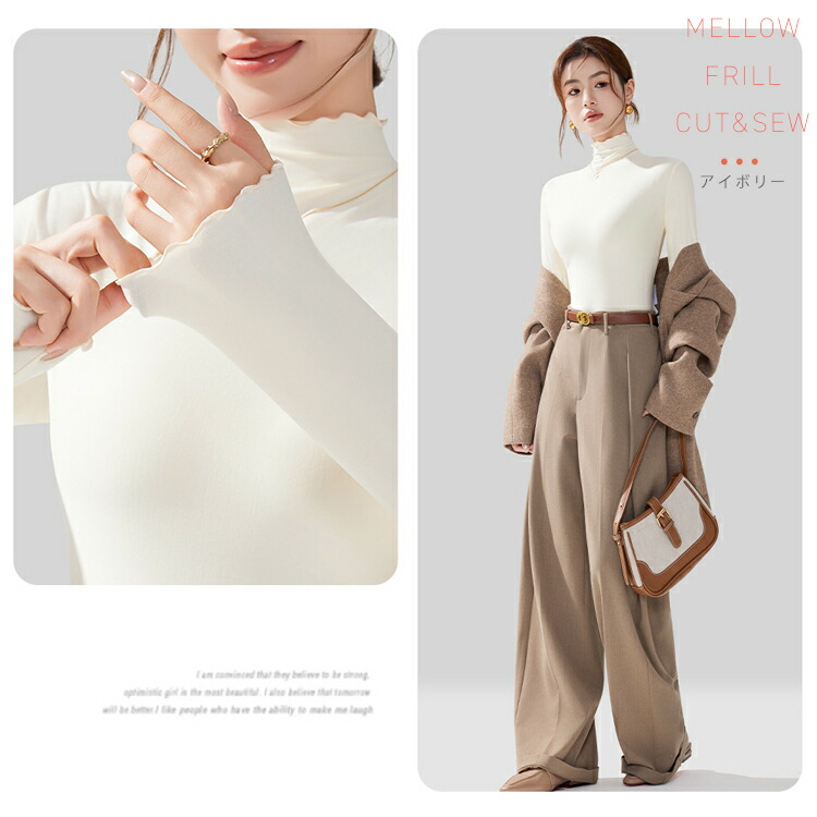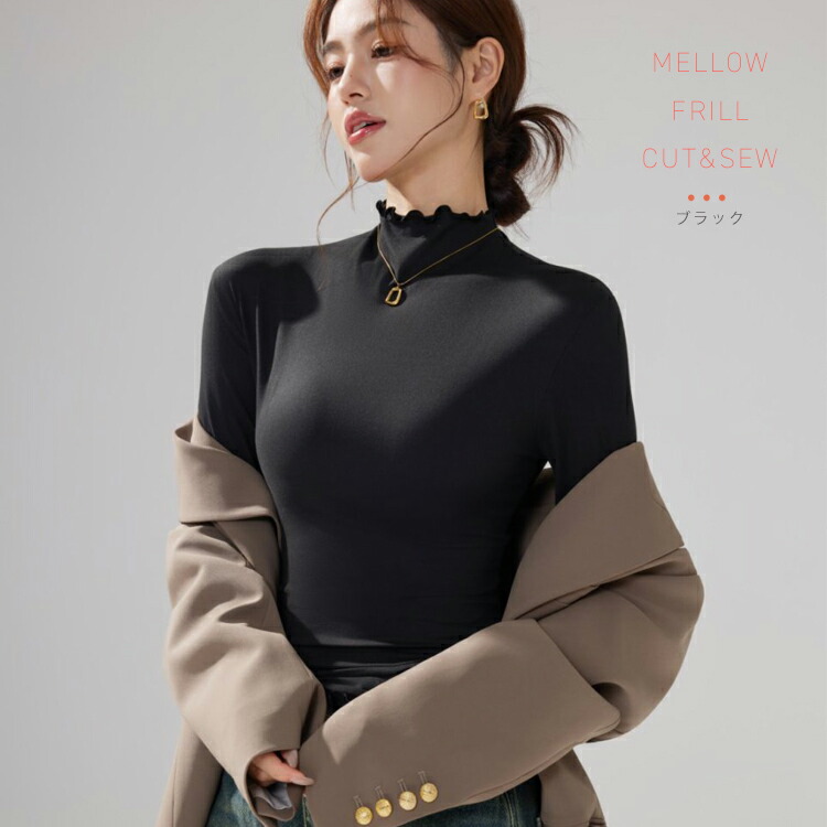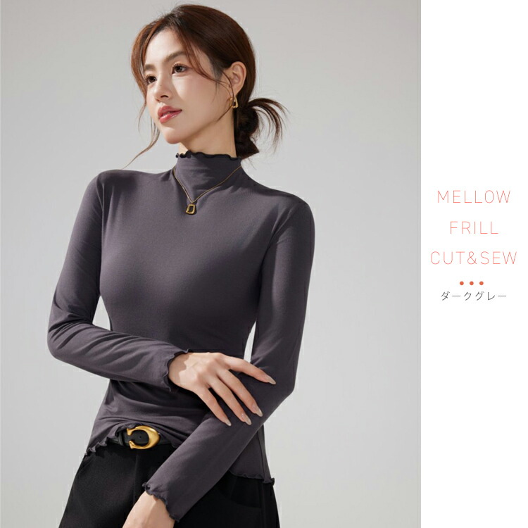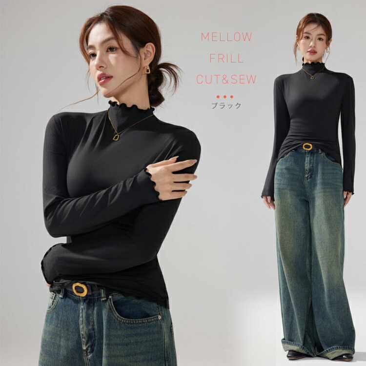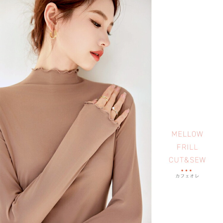 新デザイン新色 ハイネックカットソー ハイネックプルオーバー メロウフリルレディース トップス タートルネック タイトシルエット ロンT 重ね着インナー 起毛 インナー ヒートウェア 長袖 柔らかい