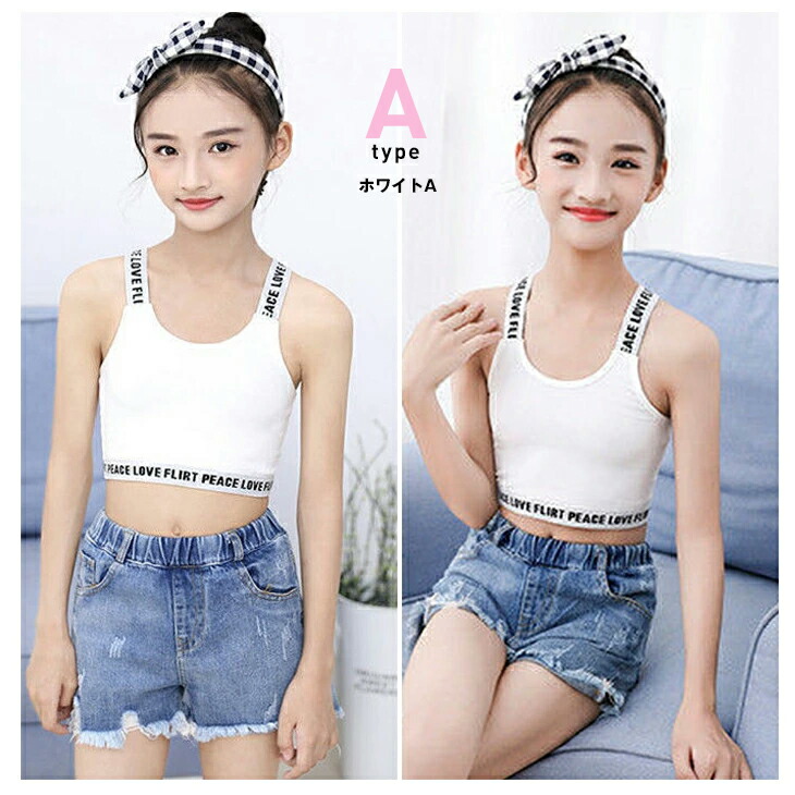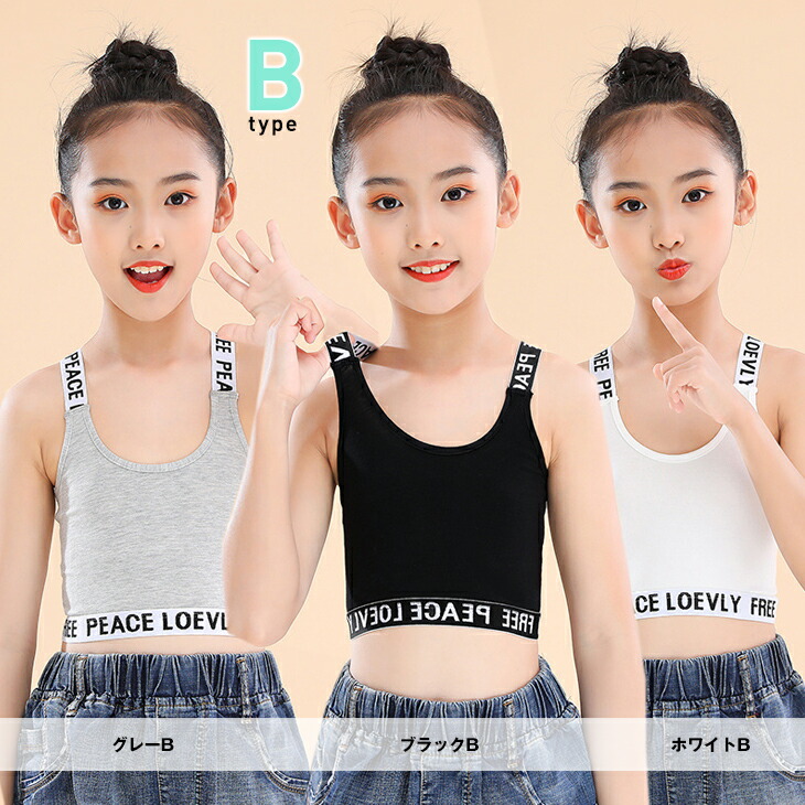 キッズ タンクトップ インナー へそ出し ブラック ホワイト グレー ダンス スポーツブラ ブラトップ 衣装 ヒップホップ キッズダンス衣装 子供 ショート丈