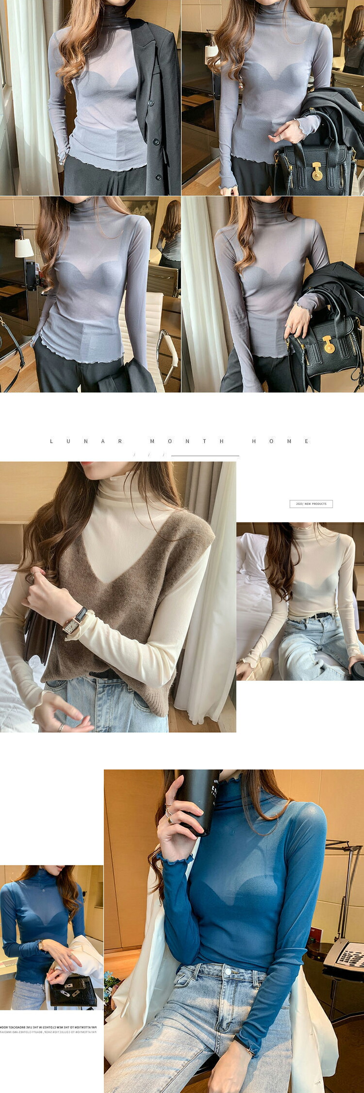 春夏 レディース トップス シアートップス レース チュール シースルートップス 長袖 刺繍 花柄 インナー ハイネック 肌魅せ タートルネック レイヤード UV対策 キレイめ 華やか 透 日焼け対策