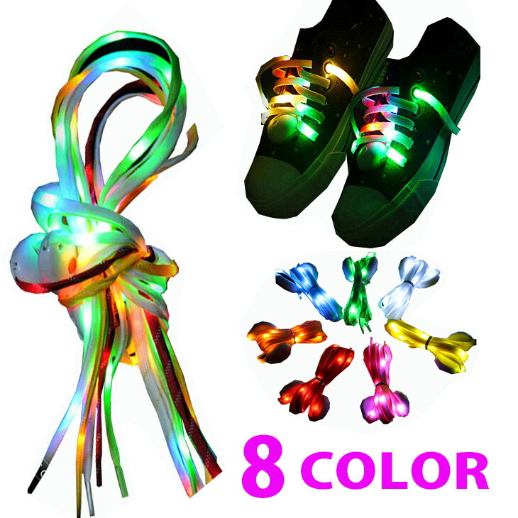 光る靴ひも LED 7カラー 夜ランニ ジョギング マラソン シューズ レディースシューズ 豊富 レインボー レッド イエロー ホワイト ブルー オレンジ グリーン