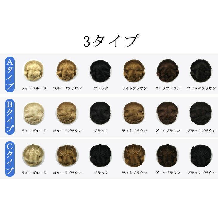 お団子ウィッグ ウィッグ お団子 フォ ホビー 続々登場 Aタイプ Bタイプ Cタイプ ライトゴールド ゴールドブラウン ブラック ライトブラウン ダークブラウン ブラックブラウン