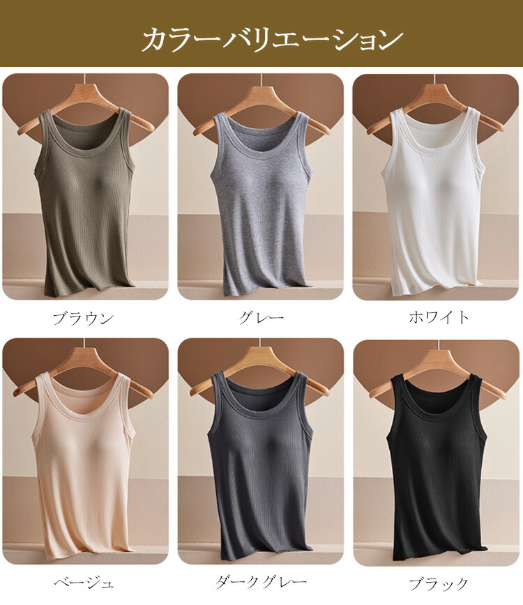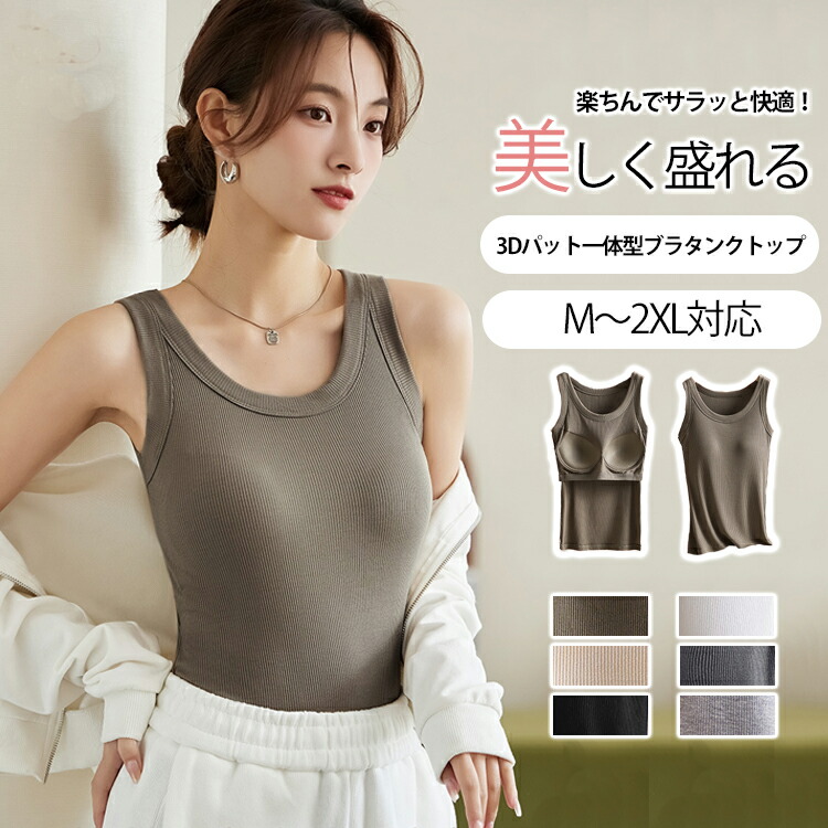 リブ タンクトップ ブラトップ カップ インナー 下着 ナイトウエア 続々登場 M L XL 2XL ホワイト ブラック グレー ダークグレー ベージュ ブラウン