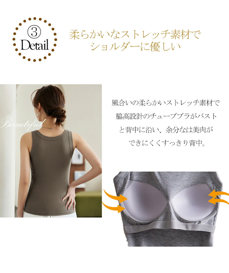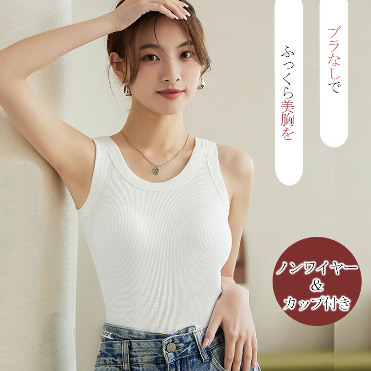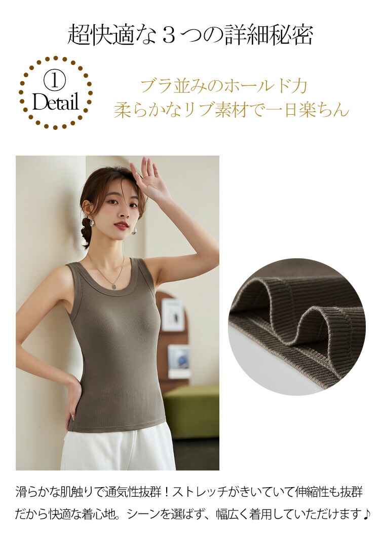 リブ タンクトップ ブラトップ カップ付き 春夏 パッド一体型 ノースリーブ ノンワイヤー カップ付きインナー 楽ちん 美しく盛れる 楽々 盛れる 楽盛りキャミ 柔らかい ストレッチ 重ね着 見 伸縮