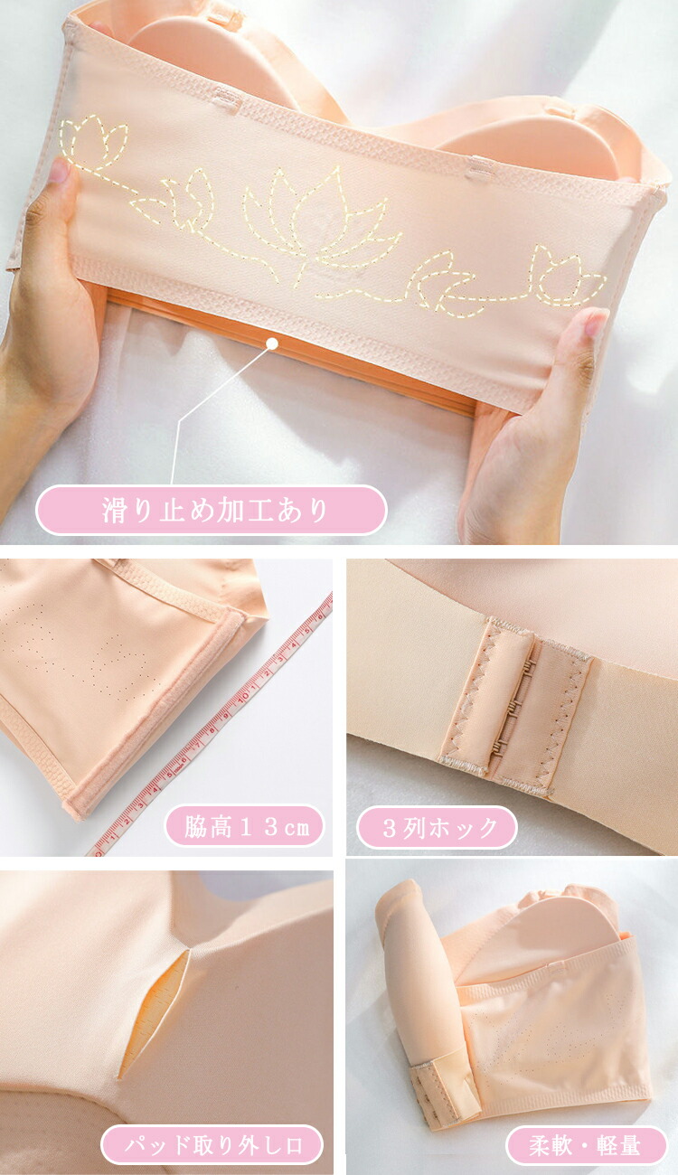 ストラップレスブラ ノンワイヤー ずれ レディース インナー 下着 ブラジャー 特集 S M L XL ブラック ホワイト ベージュ