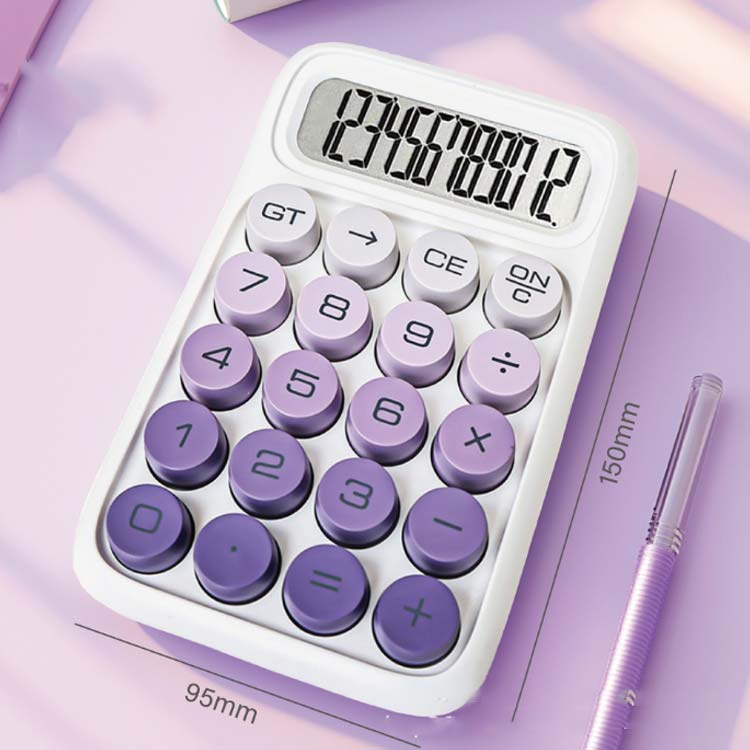 電卓 電卓12桁 使いやすい おしゃれ 機械式 かわいい電卓 可愛い電卓 グラデーション 12桁 オフィス かわいい 丸ボタン 計算機 LCDディスプレイ オシャレ文房具 滑り止め 便利 持ち運び