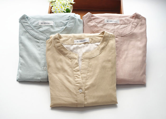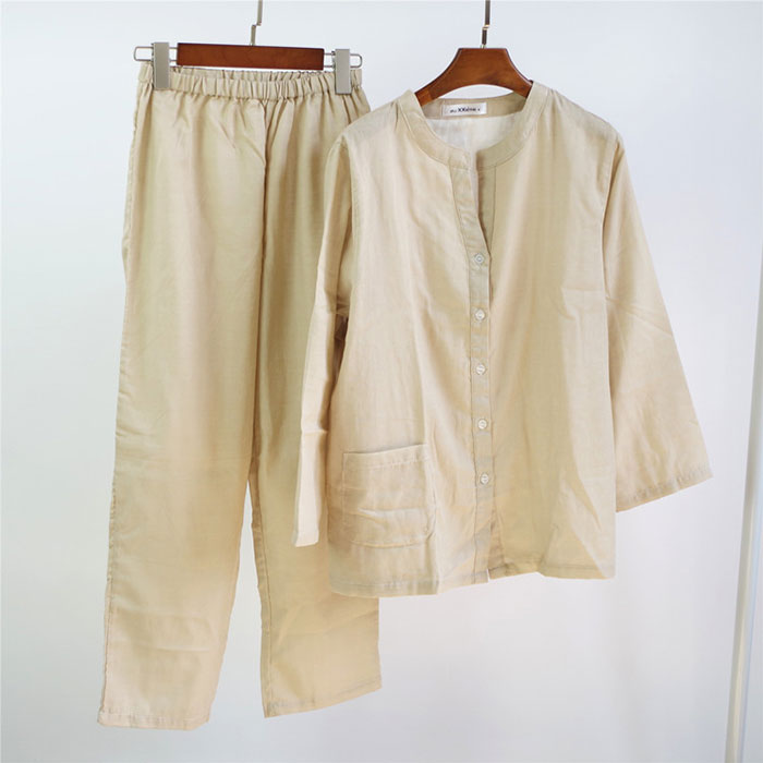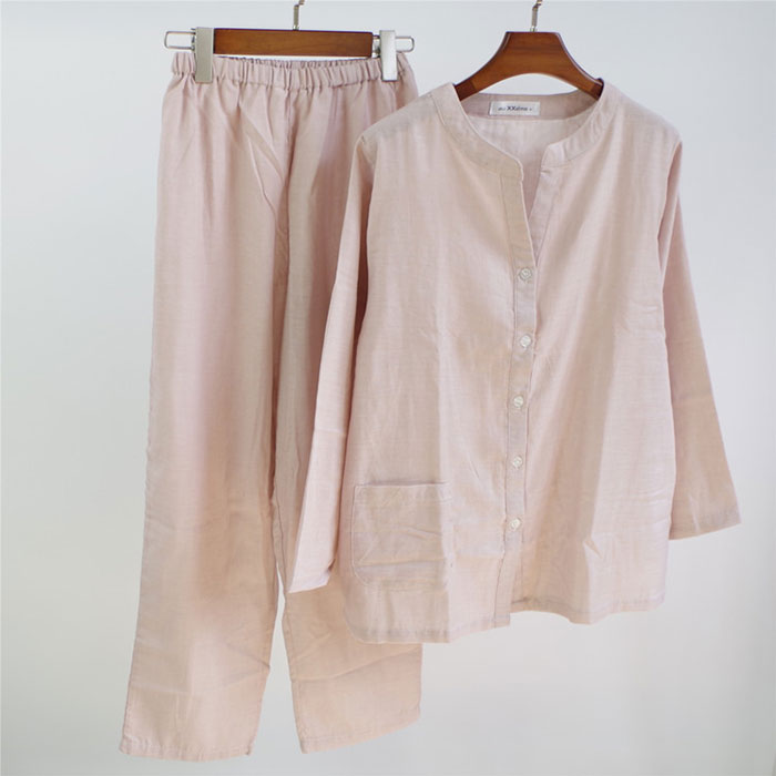 パジャマ 2重ガーゼ 綿100% 前開 インナー 下着 ナイトウエア 期間限定割引クーポン スモークピンク ベージュ ライトブルー S M L XL