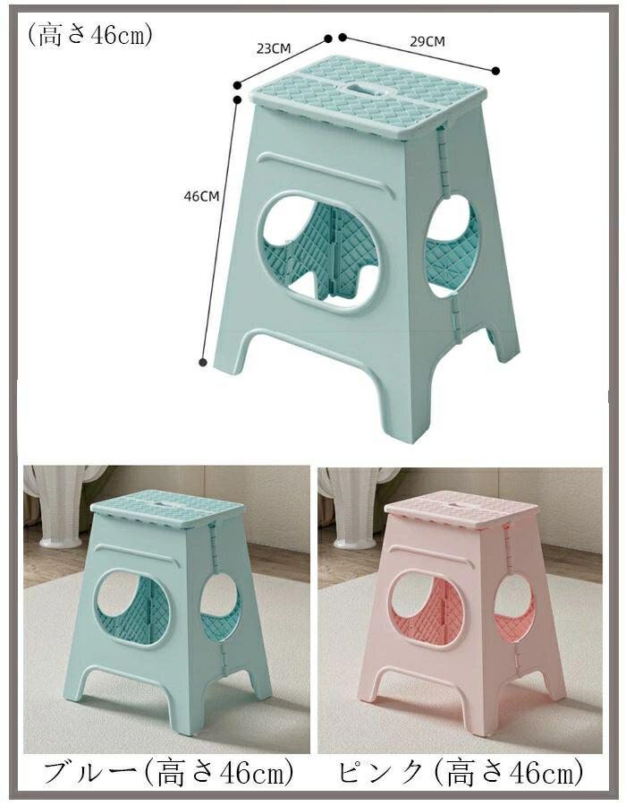 折りたたみ椅子 2色 3サイズ おしゃ ブルー(高さ22cm) ピンク(高さ22cm) ブルー(高さ28cm) ピンク(高さ28cm) ブルー(高さ46cm) ピンク(高さ46cm)
