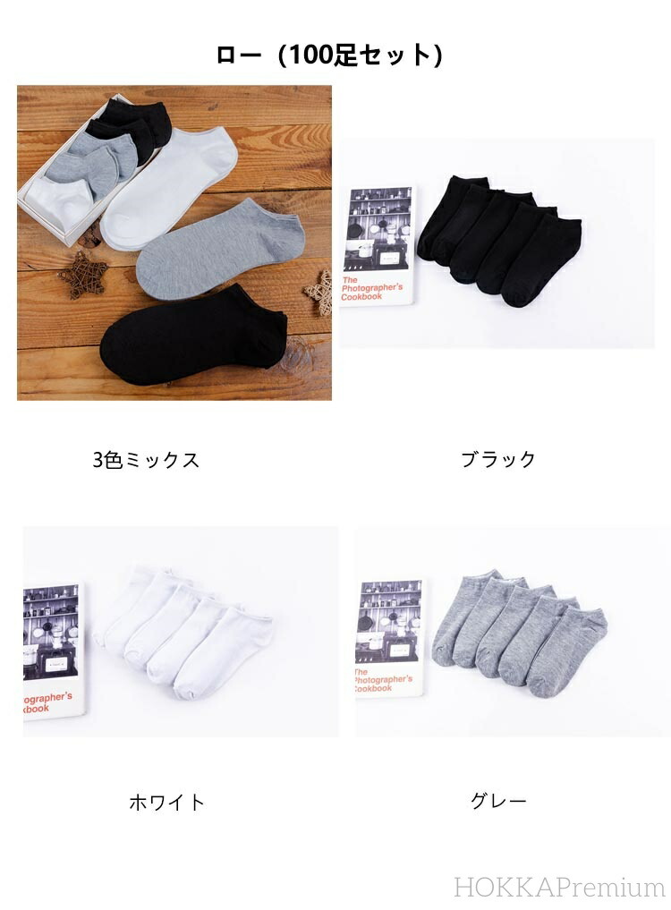 靴下 100足 セット メンズ ソック インナー 下着 ナイトウエア 通販 3色ミックス ブラック ホワイト グレー ハイ(100足セット) ロー(100足セット) フットカバー(100足セット)