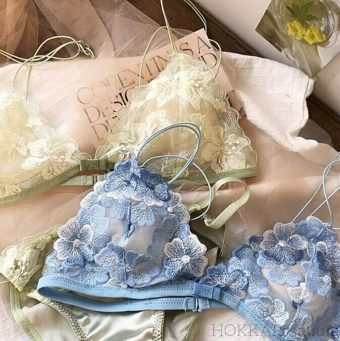 ノンワイヤー set bra 上下セッ レディース インナー 下着 ブラジャー 特集 ブルー ライトグリーン S(70AB) M(70C/75AB) L(75C/80AB)