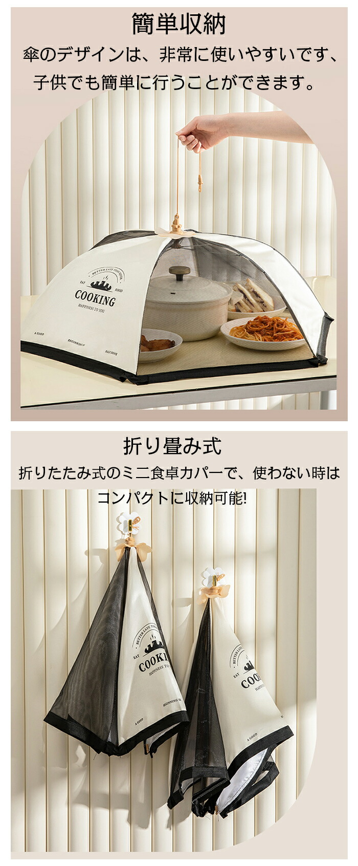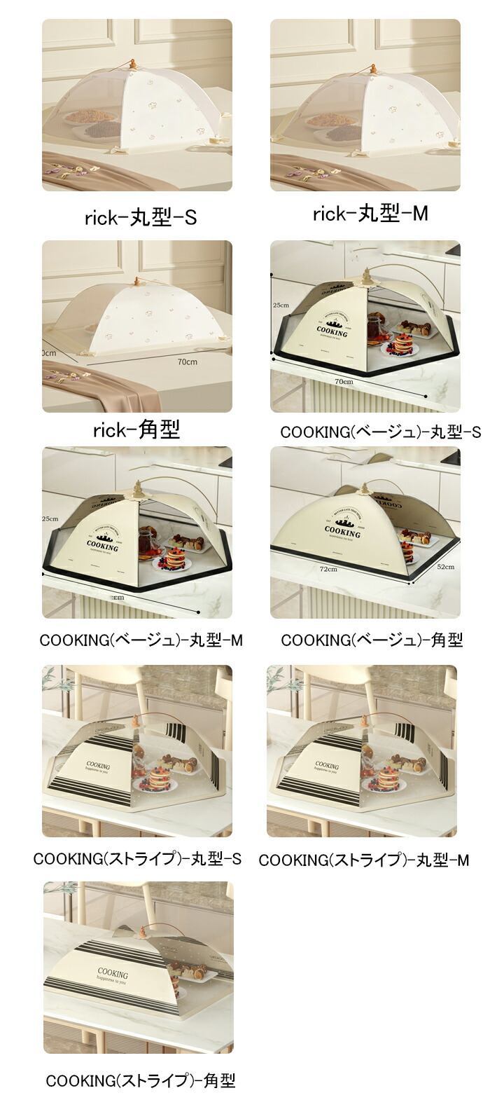 食卓カバー フードカバー 折り畳み 洗 配膳用品 キッチンファブリック その他 早い者勝ち!ポイントUP rick COOKING(ベージュ) COOKING(ストライプ) 丸型 角型