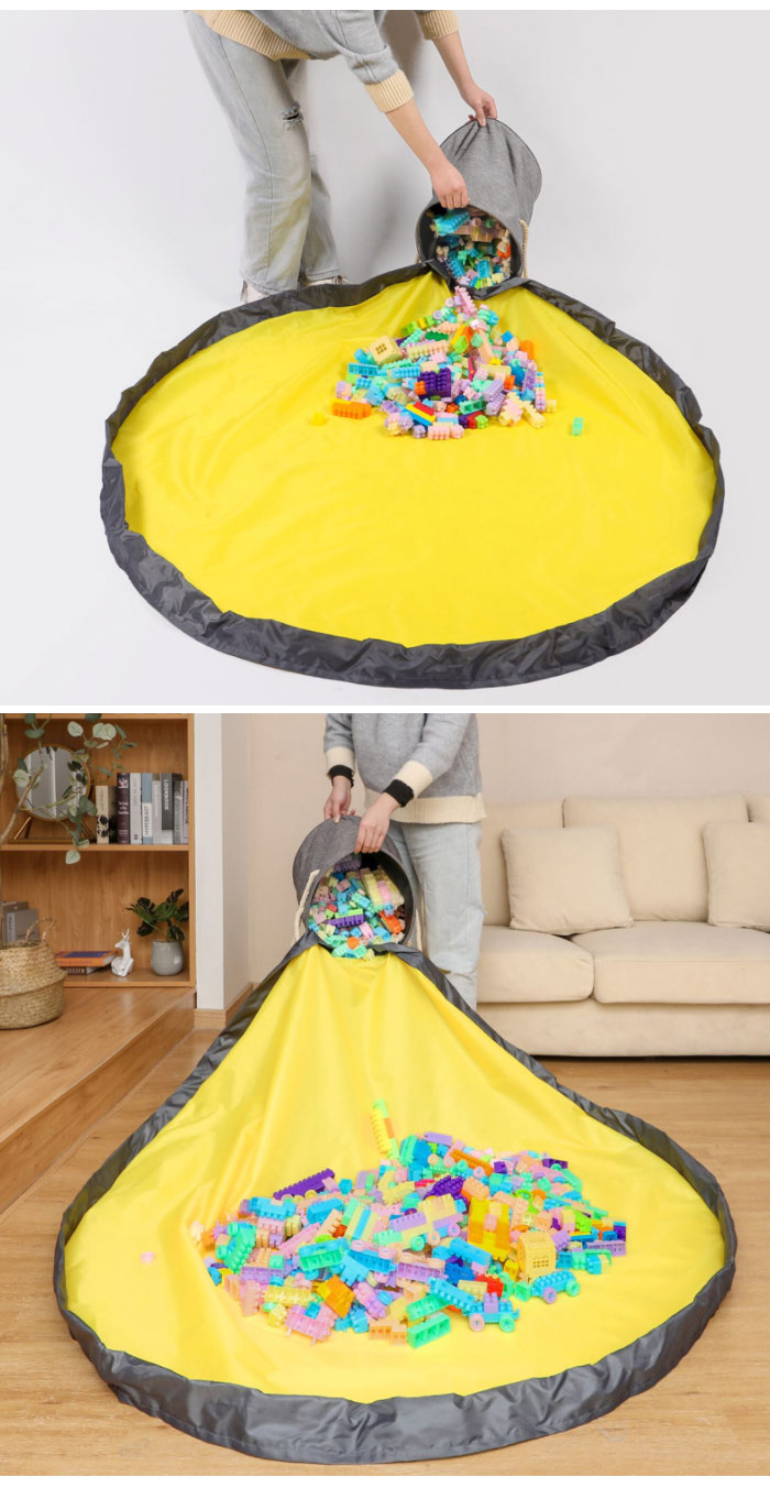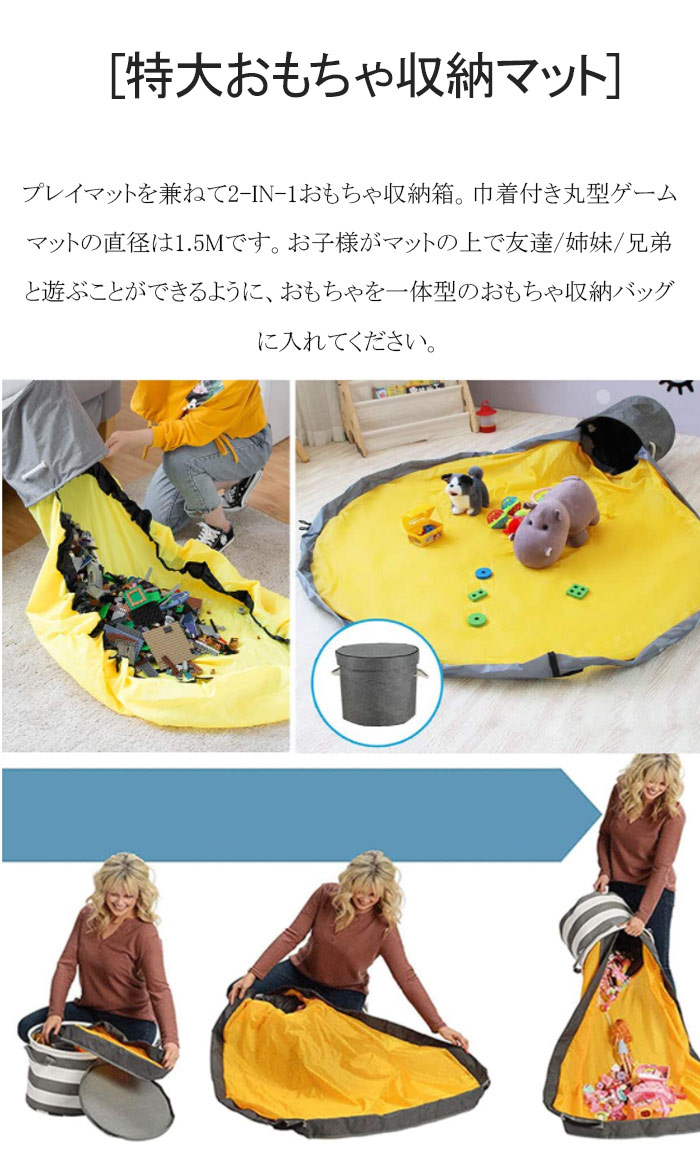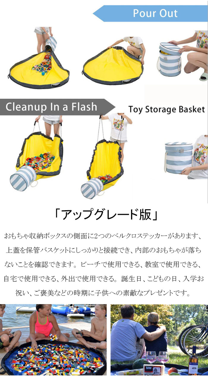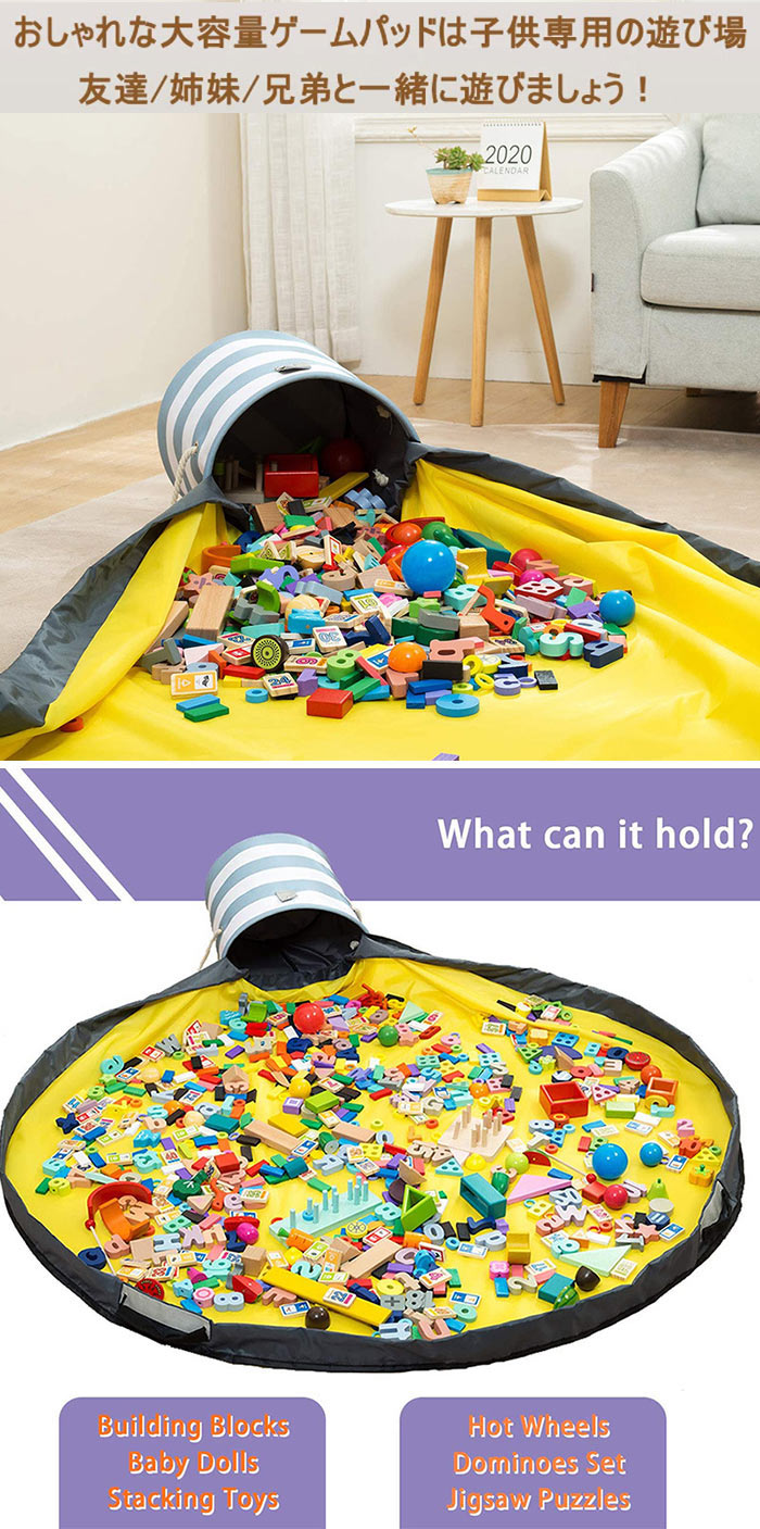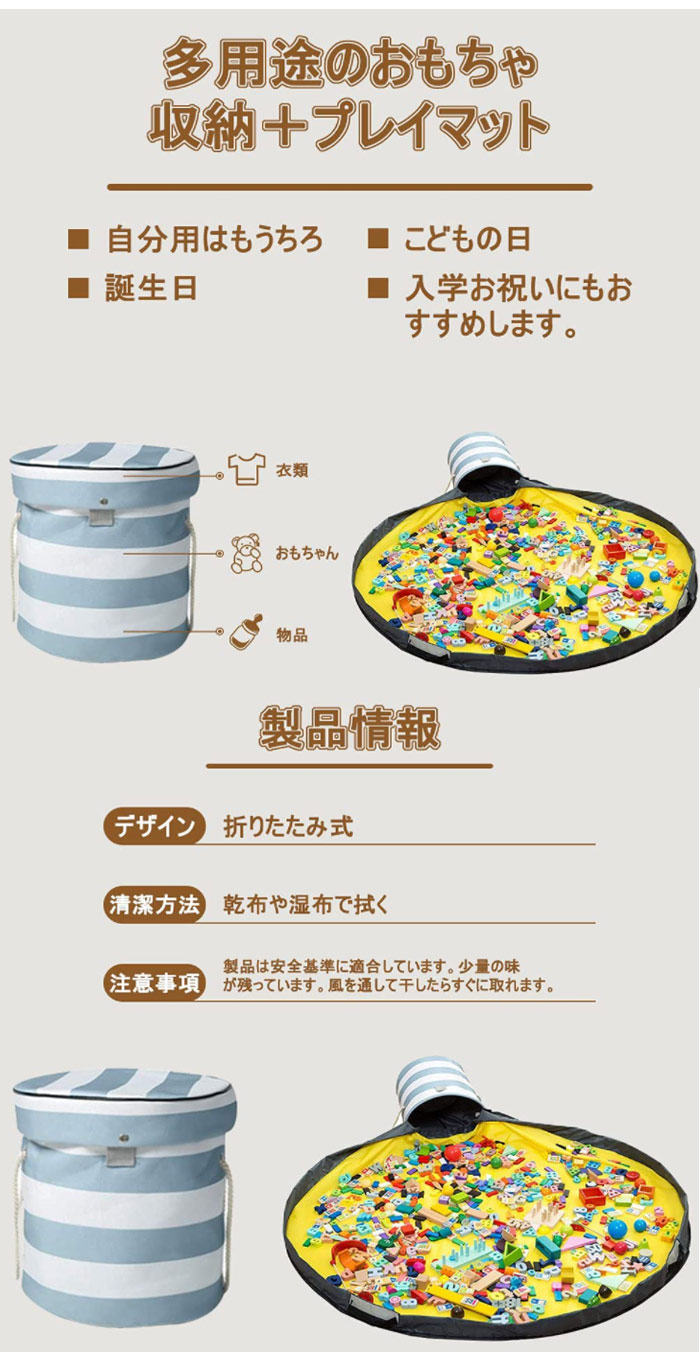 おもちゃマット 玩具収納 おもちゃ収納 ストライプブルー グレー