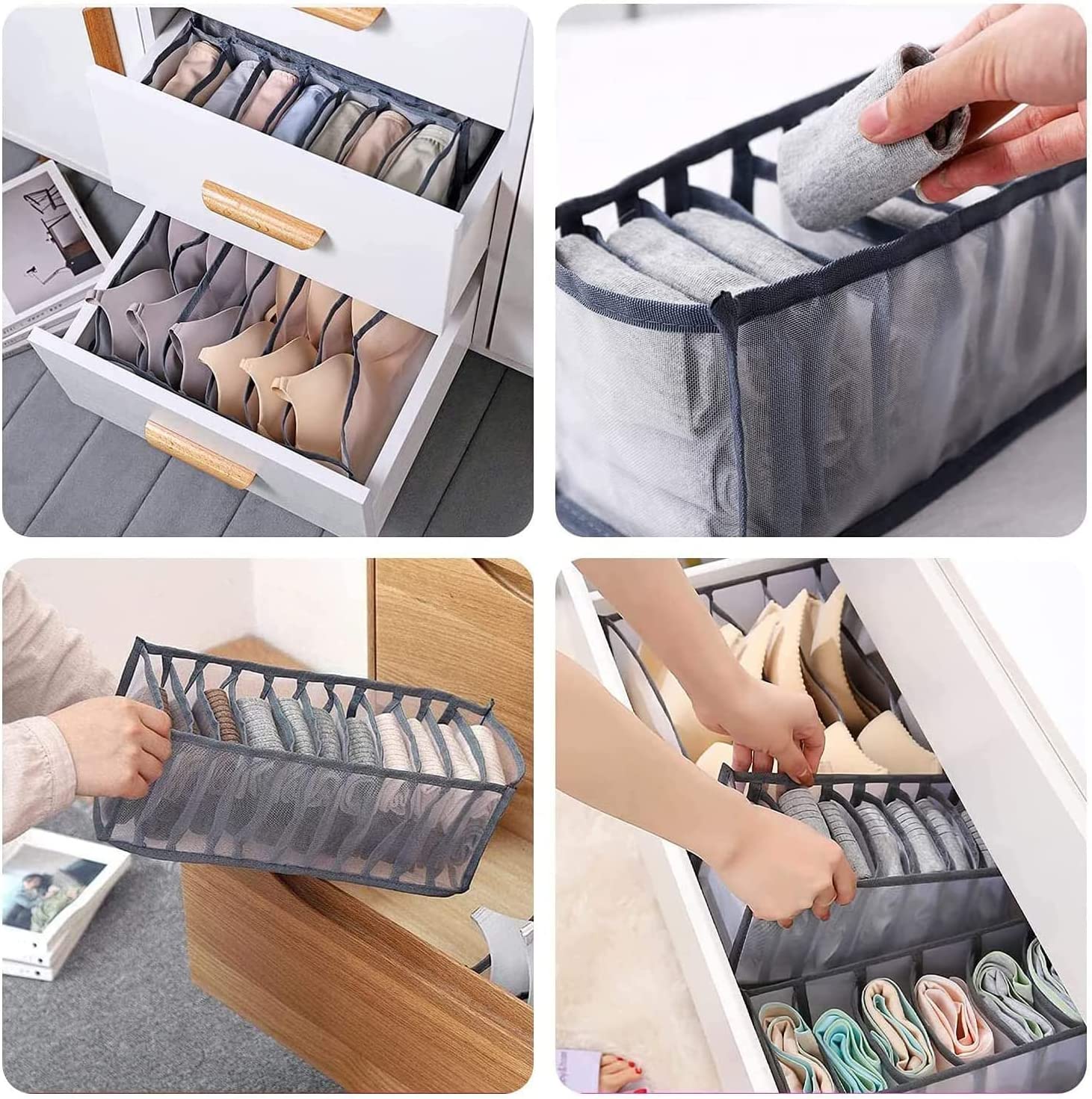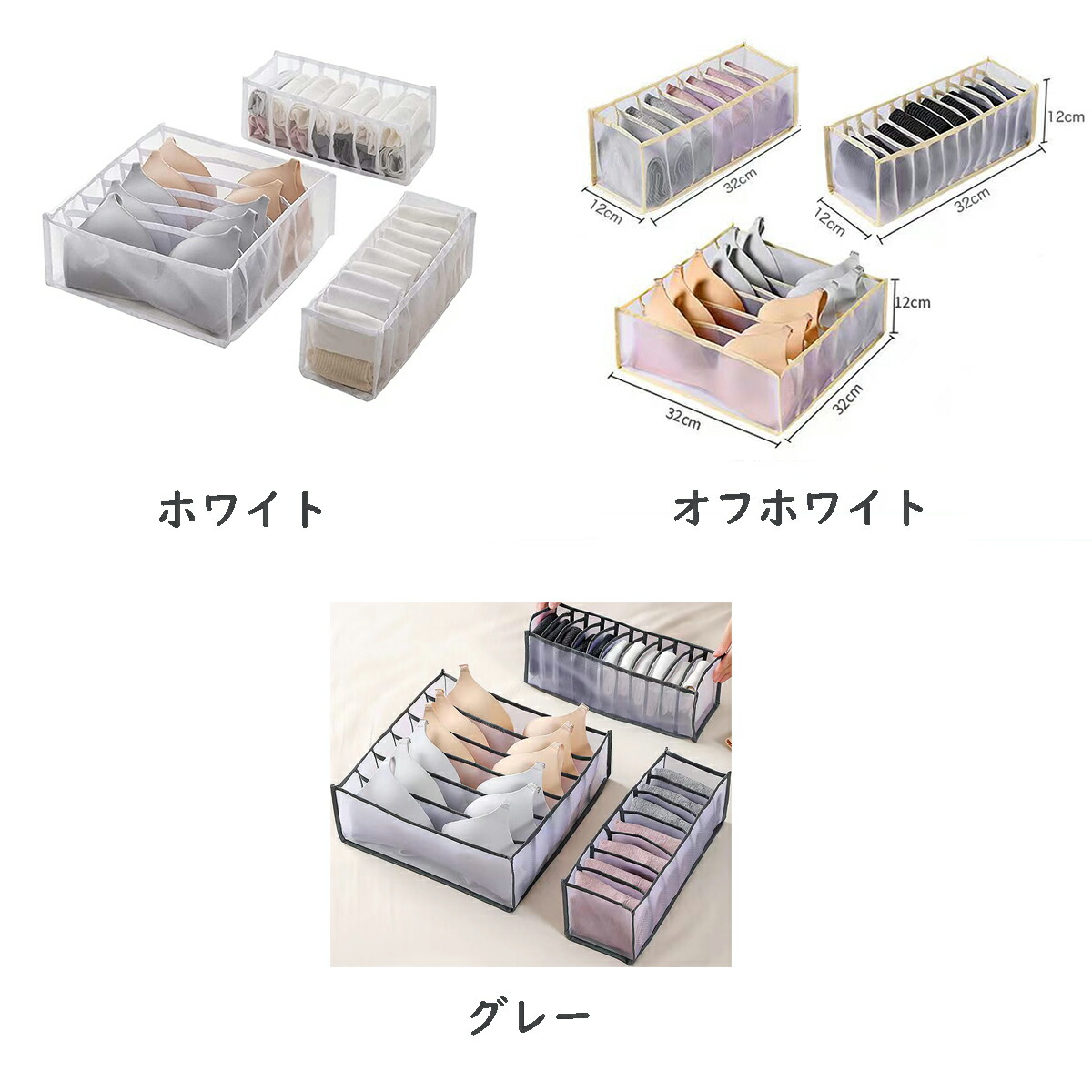 下着収納ボックス 下着収納ケース ブラ グレー 6点セット オフホワイト 6点セット ホワイト 6点セット