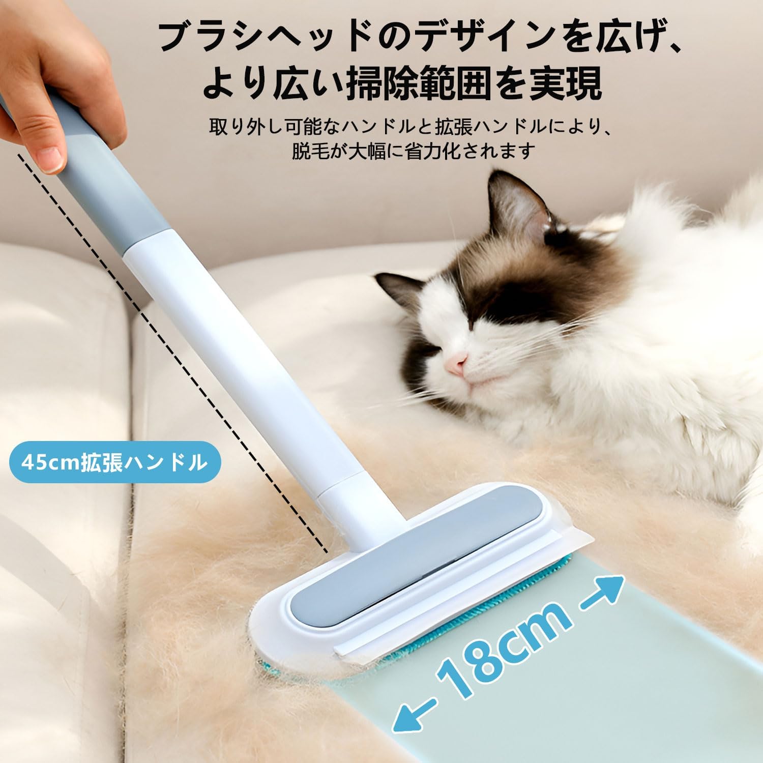 猫抜け毛取りブラシ 猫の毛取り 抜け毛 ワイパー 4-in-1 毛玉取り 猫 犬用 ペット用ブラシ 18cm幅広のブラシヘッド 抜け毛取りブラシ ペット毛対応 猫毛髪掃除 毛玉除去ブラ 抜け毛取り用品
