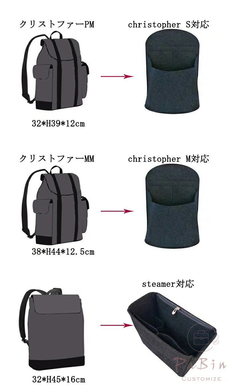 バッグインバッグ christophe バッグ レディースバッグ ハンドバッグ 人気 グレイブラック(6番) コーヒー色(14番) ワインレッド(30番) その他の色 christopher S対応 christopher M対応 steamer対応