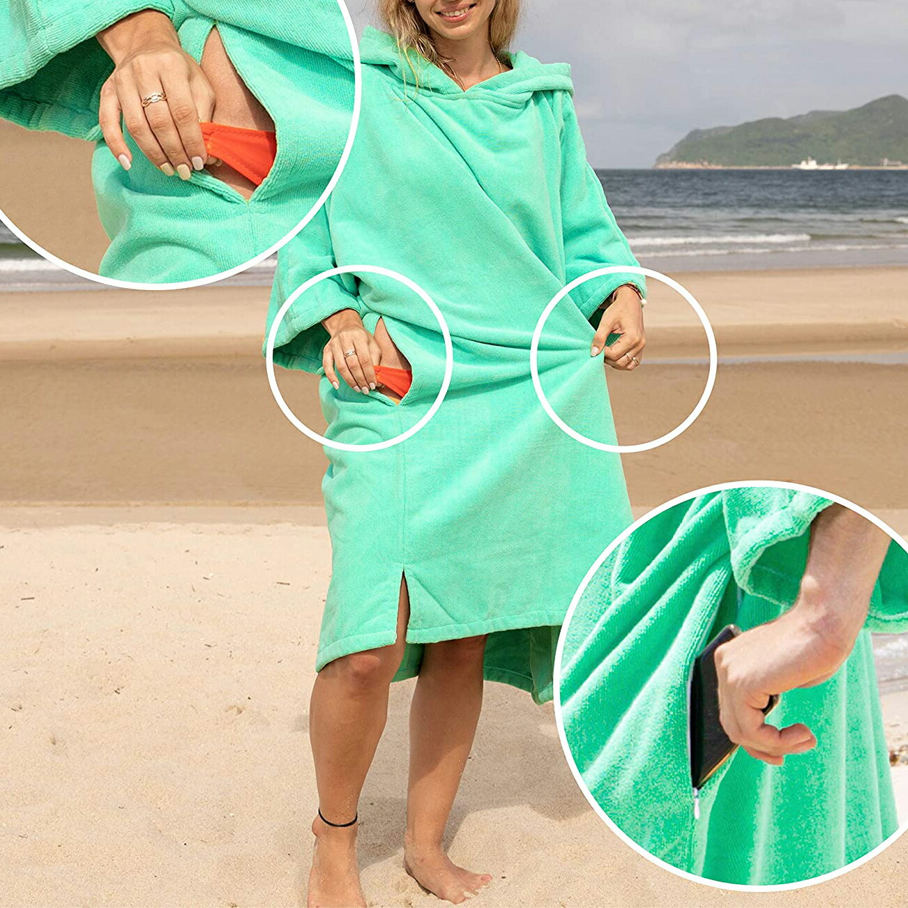 お着替えポンチョ サーフィンポンチョ お着替えタオル 速乾吸水 長袖 防寒 全6色 マイクロファイバー素材 お風呂上りに 収納便利 男の子 女の子 大人用 男女兼用