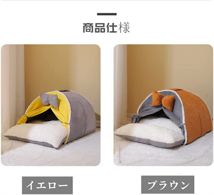 猫 ベッド ドーム型 冬 暖簾付き ペ 猫用品 ベッド マット 寝具 ベッド 人気 イエロー ブラウン M L