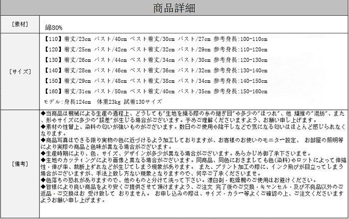 【140】着丈/28cm バスト/46cm ベスト着丈/36cm バスト/32cm 参考身長:130-140cm