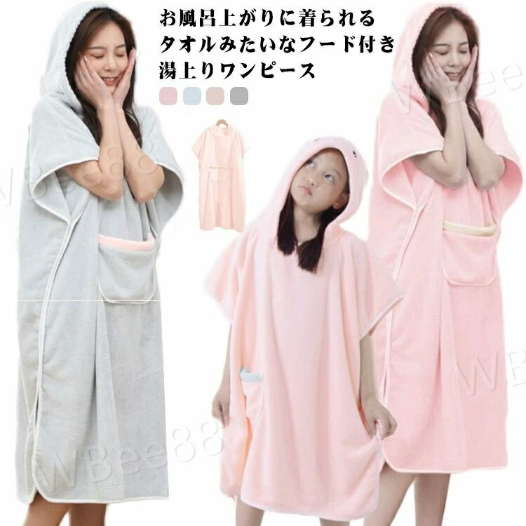 湯上りワンピース 着るタオル バスロー レディース ナイトウェア ルームウェア バスローブ 続々登場 ブルー ピンク モカ グレー キッズ ママ