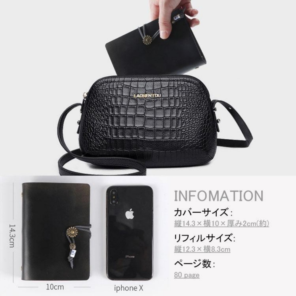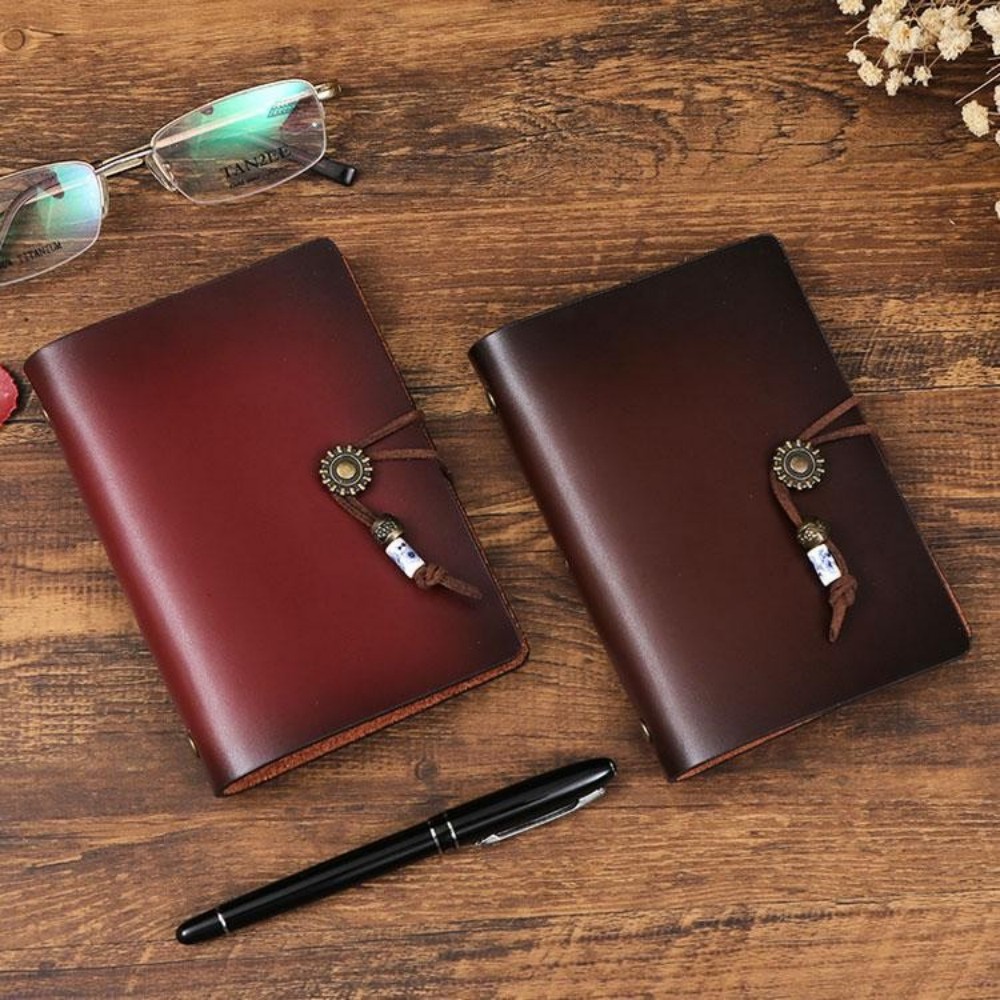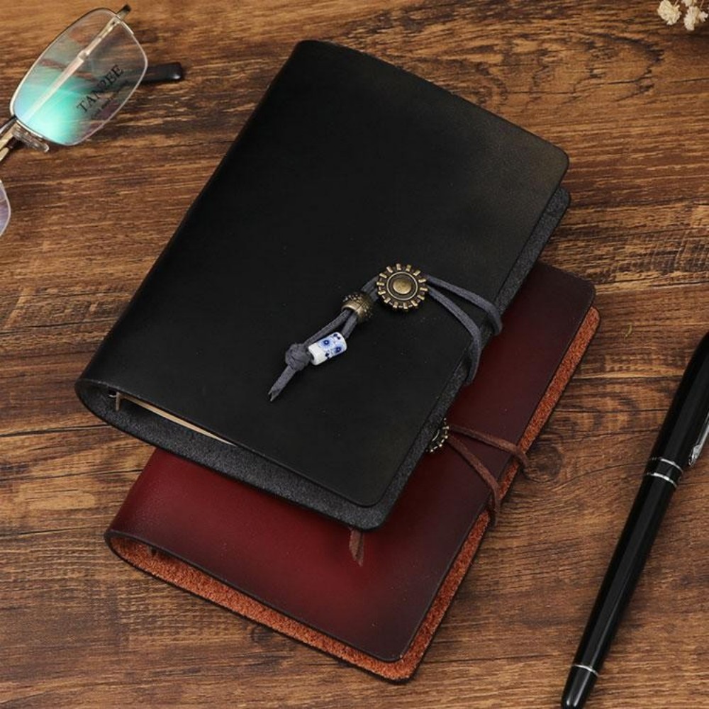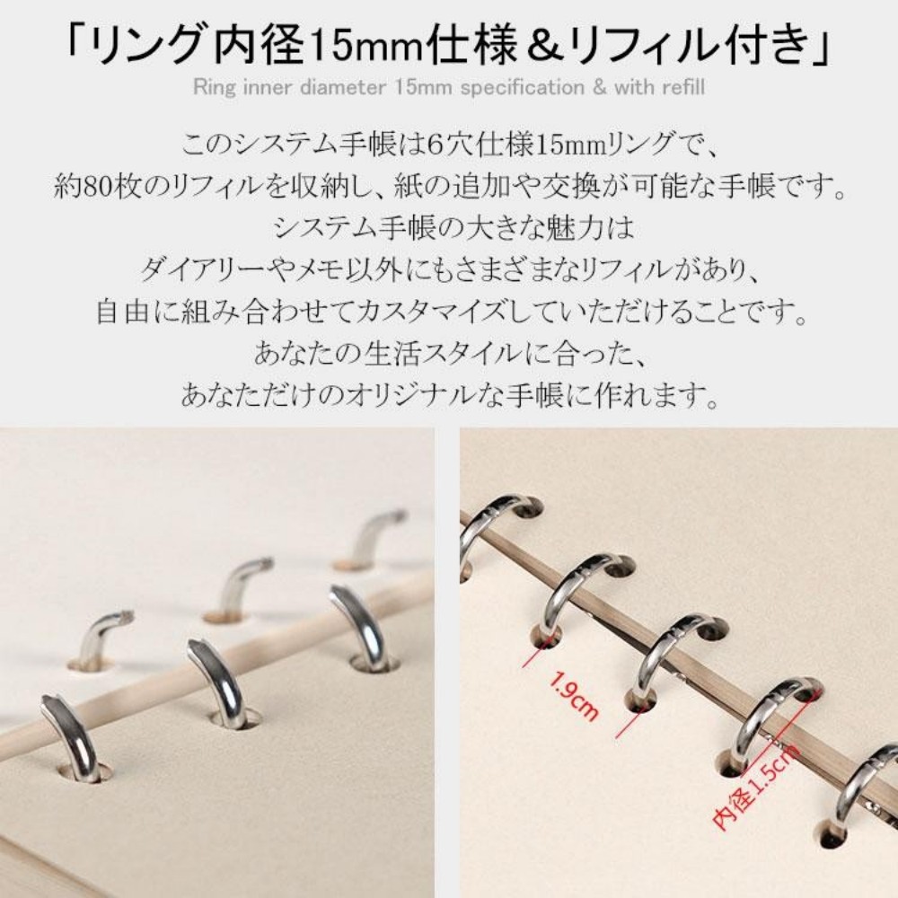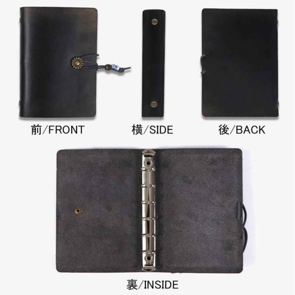 システム手帳 本革ノート A7サイズ レッド ブラック