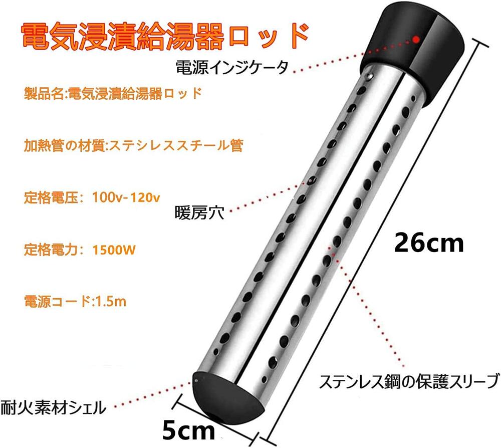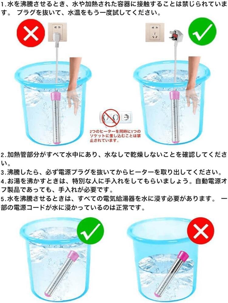 投げ込みヒーター 電気浸漬給湯器ロッド ワインレッド ブラック ネイビー イエロー