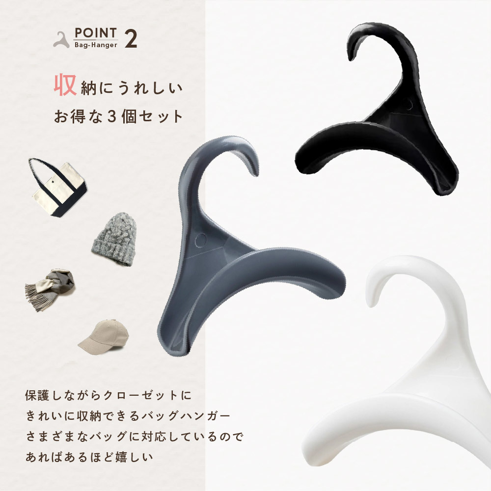 バッグハンガー 3個セット かばん掛け グレー ホワイト ブラック