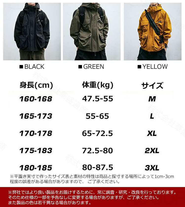 ウインドブレーカー メンズ マウンテン コート ジャケット 続々入荷中 BLACK GREEN YELLOW M L XL 2XL 3XL