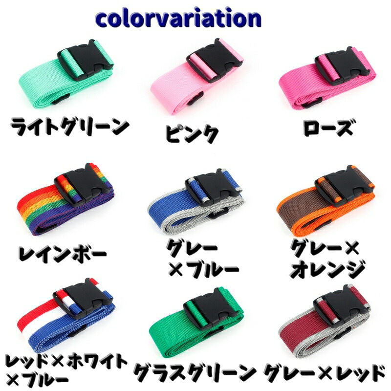 スーツケースベルト キャリーケースベル バッグ 小物 ブランド雑貨 期間限定割引クーポン パープル ライトブルー ダークグレー ネオングリーン オレンジ イエロー レッド ダークブルー ブラック ライトグリーン ピンク ローズ レインボー グレー×ブルー グレー×オレンジ レッド×ホワイト×ブルー グラスグリーン グレー×レッド レッド×ピンク×グリーン ライトパープル