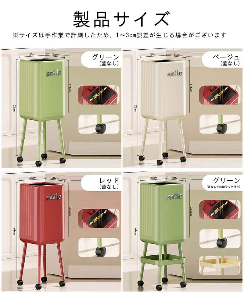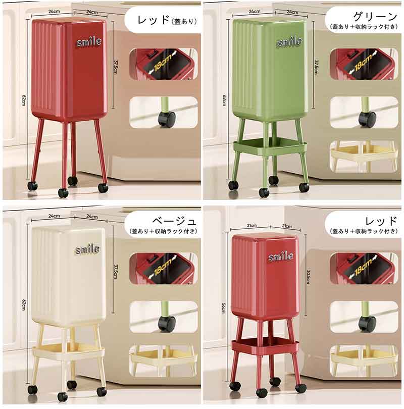 ゴミ箱 ふた付き 分別 防臭 小さい グリーン ベージュ レッド (蓋なし) (蓋なし+収納ラック付き) (蓋あり) (蓋あり+収納ラック付き)
