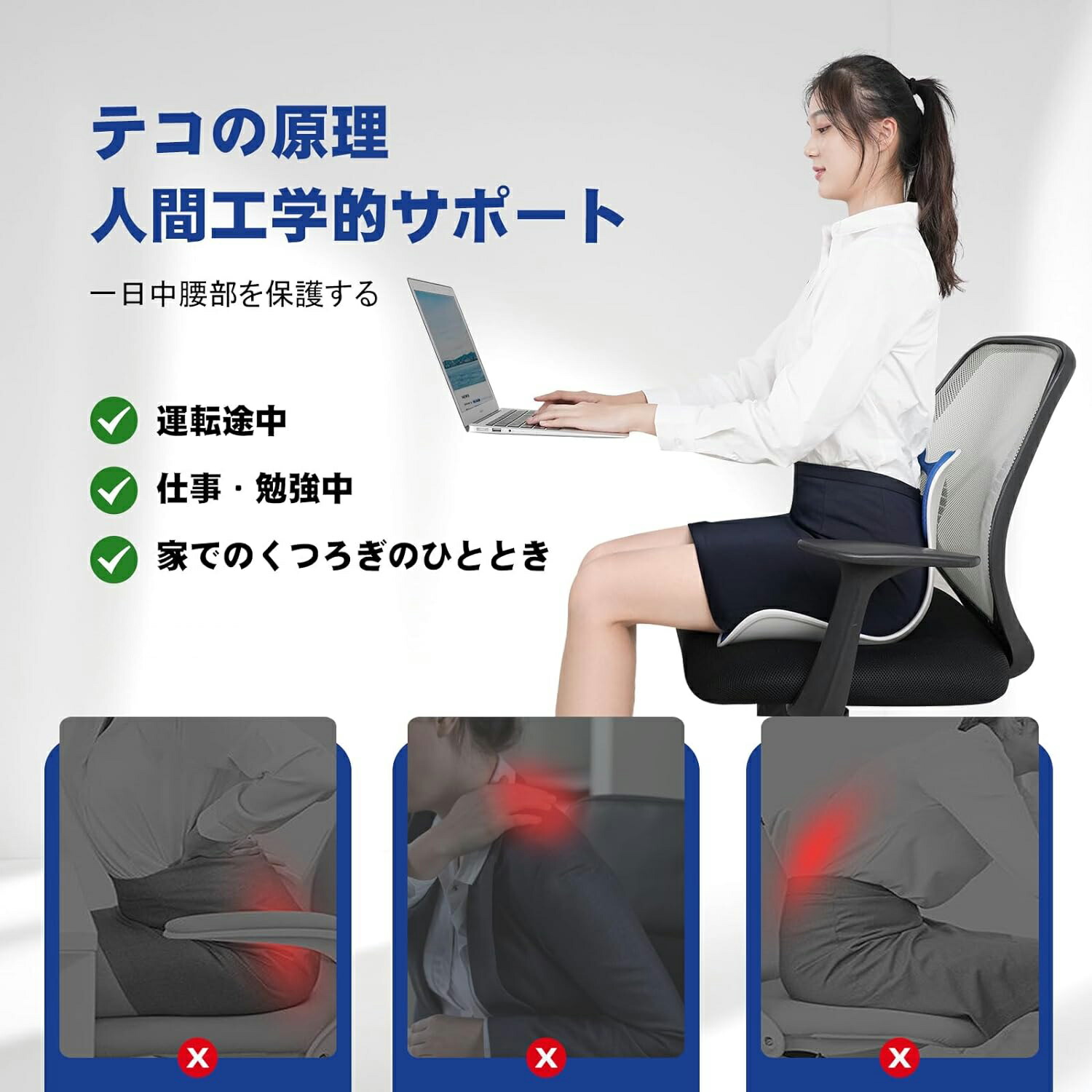 姿勢矯正 椅子 座るだけ腰が痛くならないクッション オフィスチェア ゲームチェア 床 椅子用クッション 骨盤サポートチェア 腰痛 お持ち運びやすい メモリー綿 お尻にやさしい椎間板ヘルニア 軽量