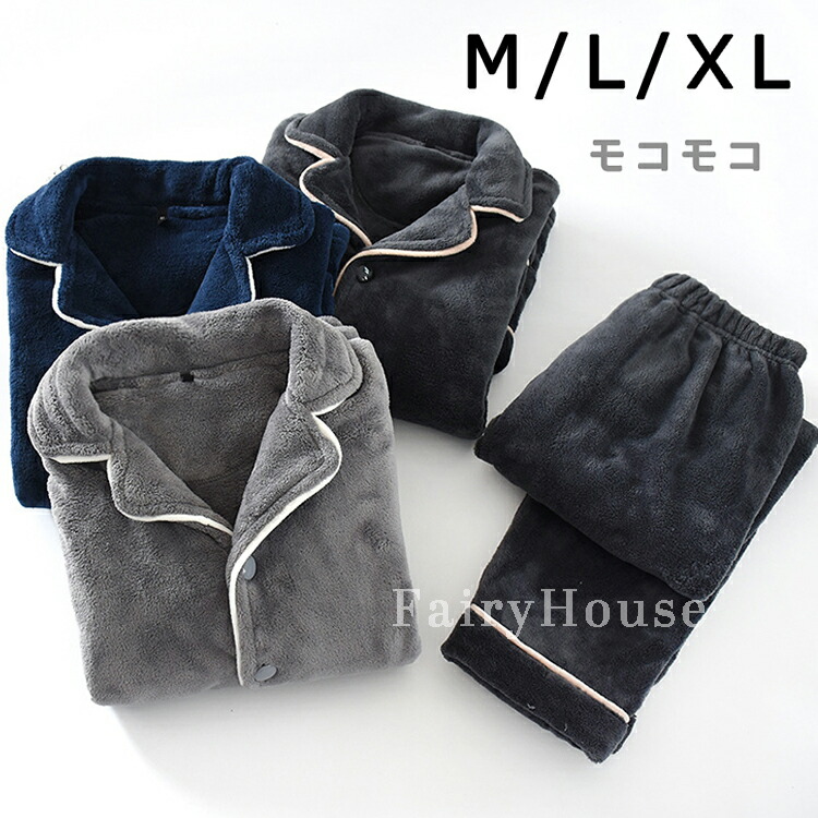 もこもこ パジャマ メンズ 冬用 モコ インナー 下着 ナイトウエア 続々入荷中 ネイビー ライトグレー ダークグレー M L XL