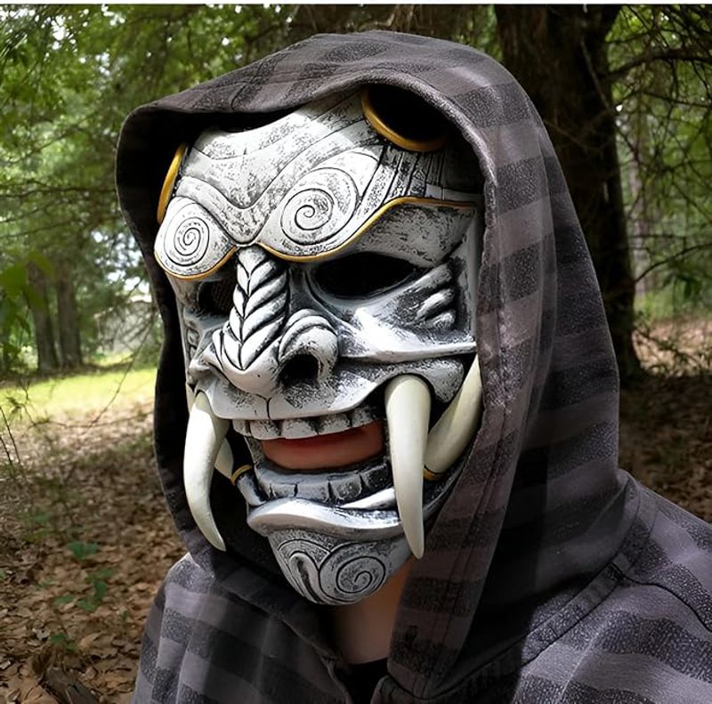 【怖いゴーストとモンスターのイメージ】マスクのスタイリングデザインは 日本のドラマの古典的なゴーストとモンスターのイメージを参照しており 牙が明らかで 眉毛が深く 人々に陰森の恐怖と神秘的な感覚を与える このユニークな視覚的インパクトと攻撃的なイメージは 刺激を好む若者のグループのニーズを満たし 新鮮なものを探求する好奇心を刺激し 無限の想像力を引き起こす