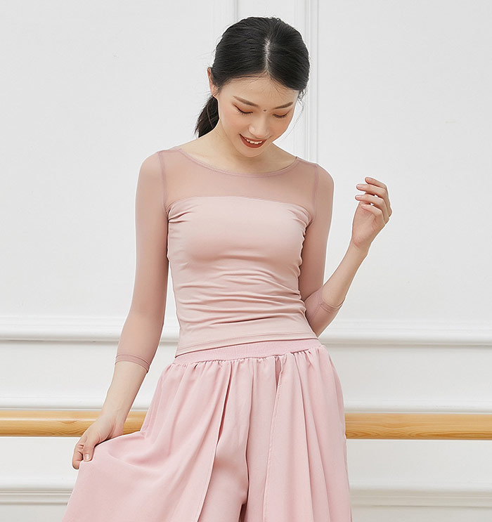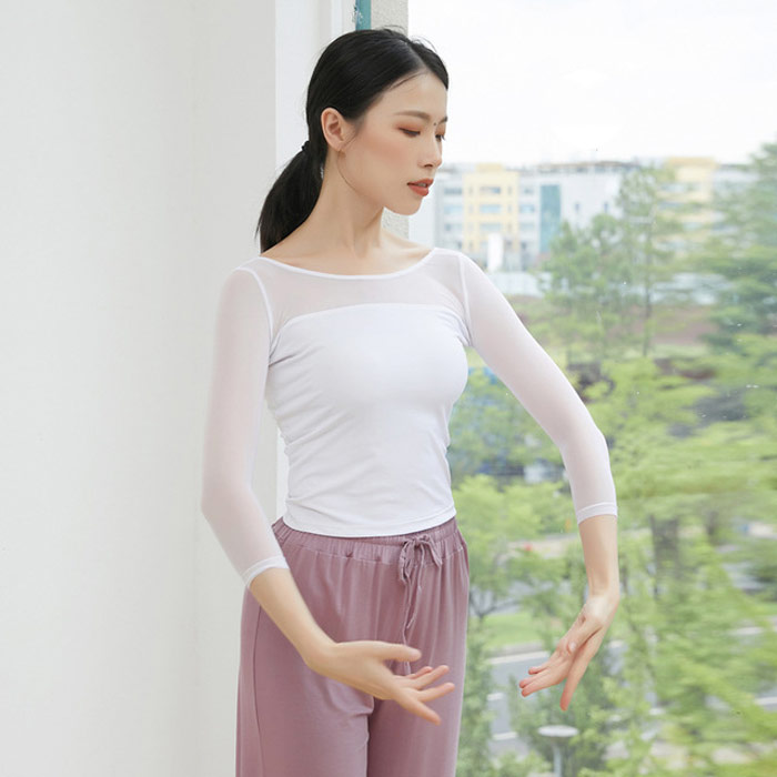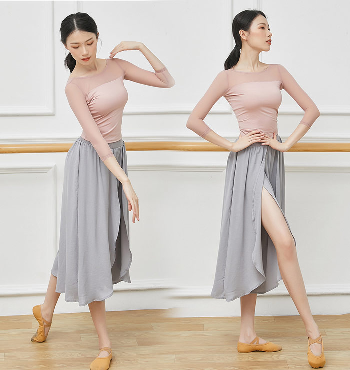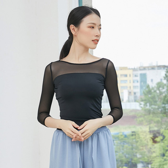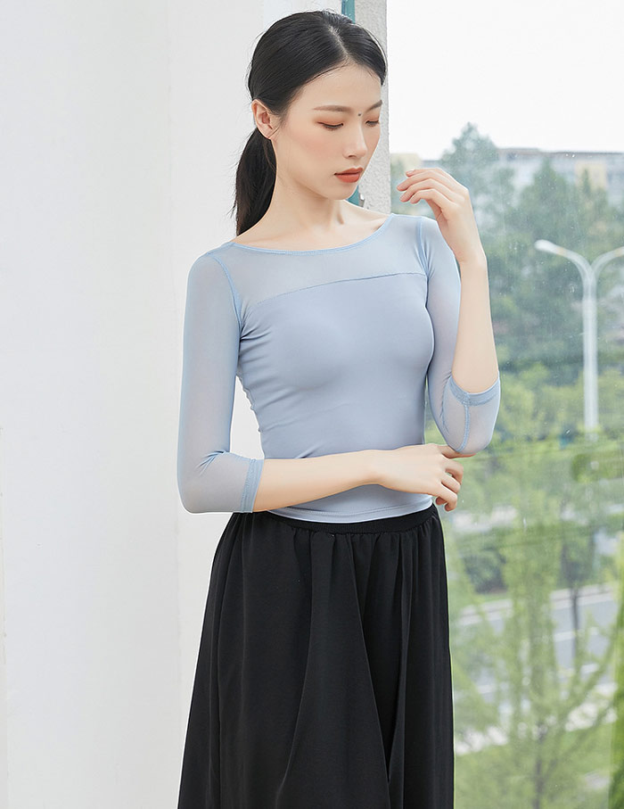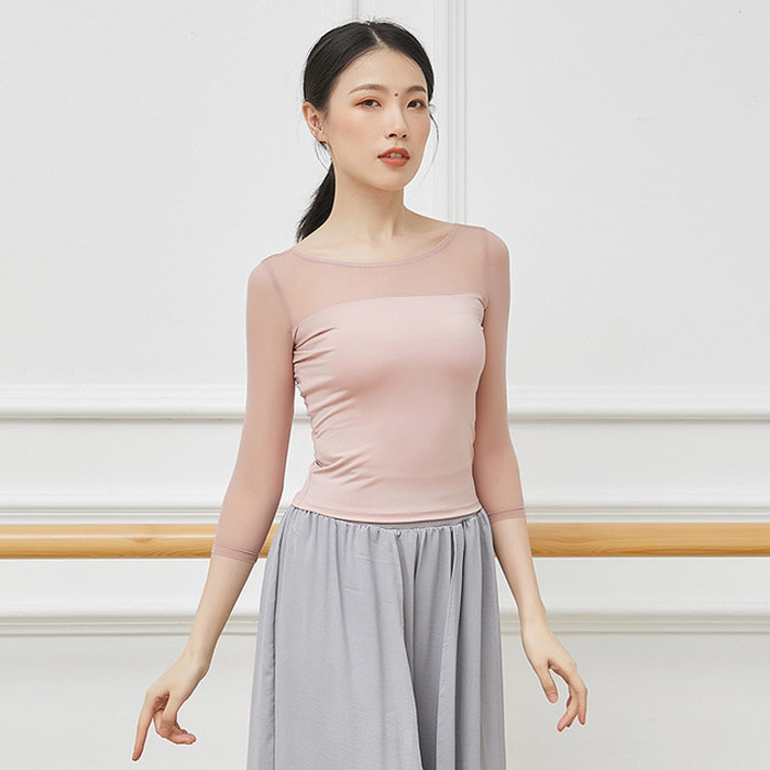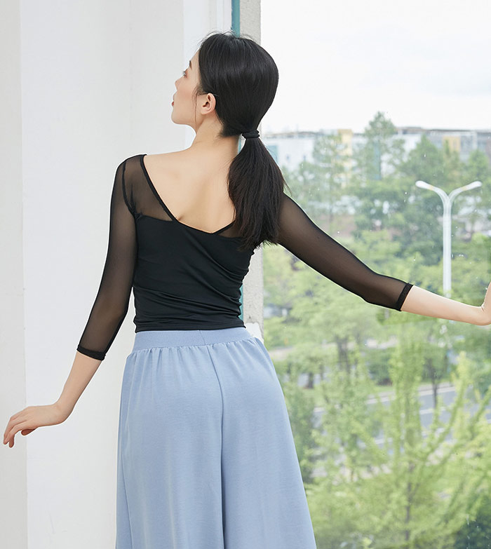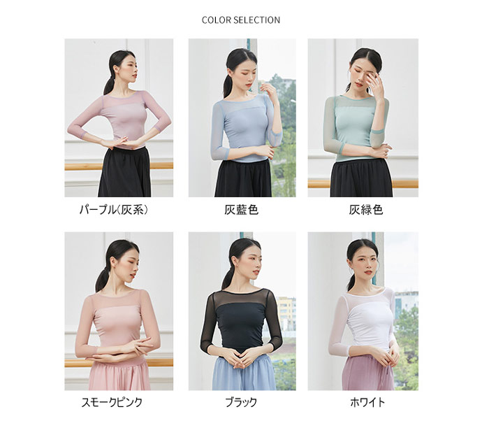 バレエ トップス 大人 7分袖 ストレ S M L XL 2XL ブラック ホワイト スモークピンク 灰藍色 灰緑色 パープル(灰系)