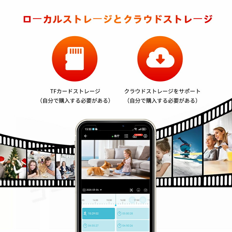 【インテリジェントな動き検出とリアルタイムのアラーム】:このカメラは、監視エリア内のあらゆる動きを正確にキャッチする高感度の動き検出センサーを搭載しています。動きを検知すると、即座にアラームが鳴り、アプリでスマートフォンにプッシュ通知が送られます。アラーム画面をいつでもどこでも見ることができ、不測の事態を知ることができます。